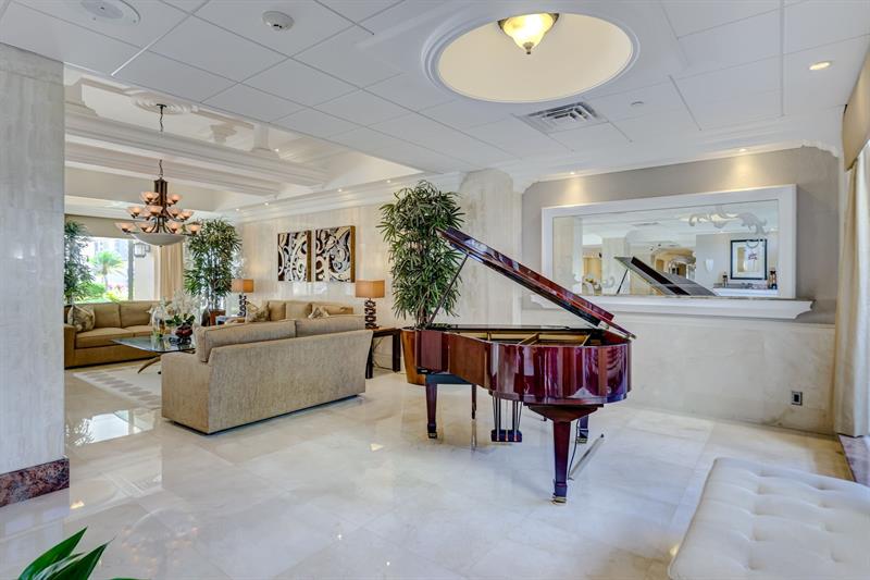 Inside, this residence features spacious bedrooms with walk-in closets and elegant finishes. Located in a premier resort-style building, residents enjoy 24-hour security, garage parking, an oceanfront pool, and an inviting lobby with the soothing melodies of a grand piano.