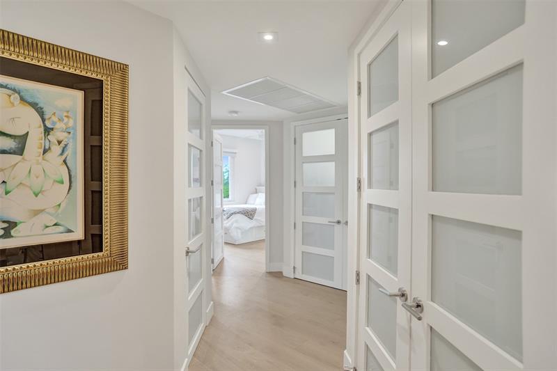 Want to live by the ocean? Come home to this beautiful Hillsboro Bay By The Sea townhome community, situated in the coveted oceanside enclave Hillsboro Shores in Pompano Beach. Substantially renovated residence exudes luxury & thoughtful features to capture your heart, including: spectacular chef's kitchen, wood flooring, custom built-ins & closets, private elevator, frosted interior doors, tankless water heater, central vac, impact windows & doors, and so much more. Saturated in natural light, this 4BR/3.5BA/2CG has generous rooms throughout, 16' ceilings, and ocean views from LR & primary BR balcony. Escape to your private backyard paradise featuring new pool & natural stone waterfall, travertine deck. Private gated beach access. Come view this one, you won't want to leave!