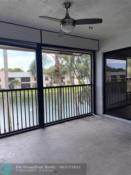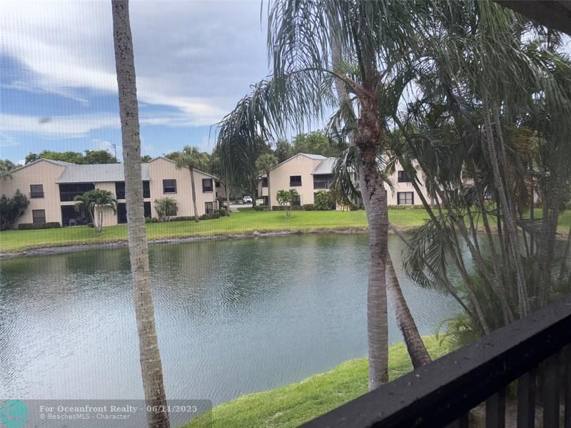 Second-floor 3 bedroom unit with lake views from all bedrooms! Features updated kitchen with quartz countertops, wine rack, and stainless steel appliances. Spacious primary bedroom with walk-in closet. Screened balcony with hurricane shutters overlooks the lake. Roof recently repaired by the association. Move-in ready! Low association fees.