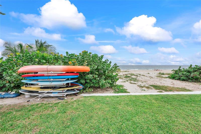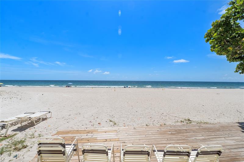 Beautifully updated condo on the sand! This bright, airy southeast-facing corner residence overlooks the garden and pool, just one quick flight down and you can put your toes in the sand. From the spacious balcony, enjoy partial ocean views to the left, watch the sunrise over the Atlantic, and relax as the sun sets through the palms. The open layout offers two oversized primary bedrooms with walk-in closets and ensuite baths, plus a designer kitchen with quartz countertops and high-end stainless-steel appliances. Features include Bosch washer/dryer, impact windows, gated beach access, secure lobby, heated pool, entertainment room, and assigned parking. Unfurnished and move-in ready for coastal living at its finest.