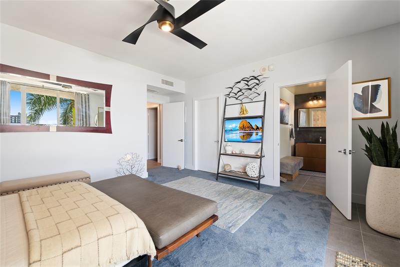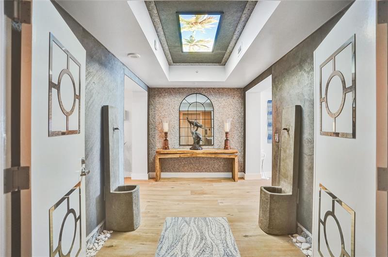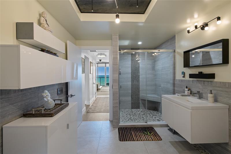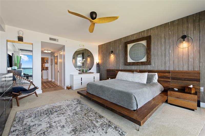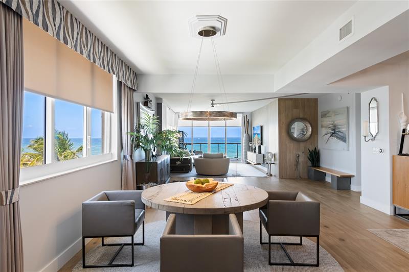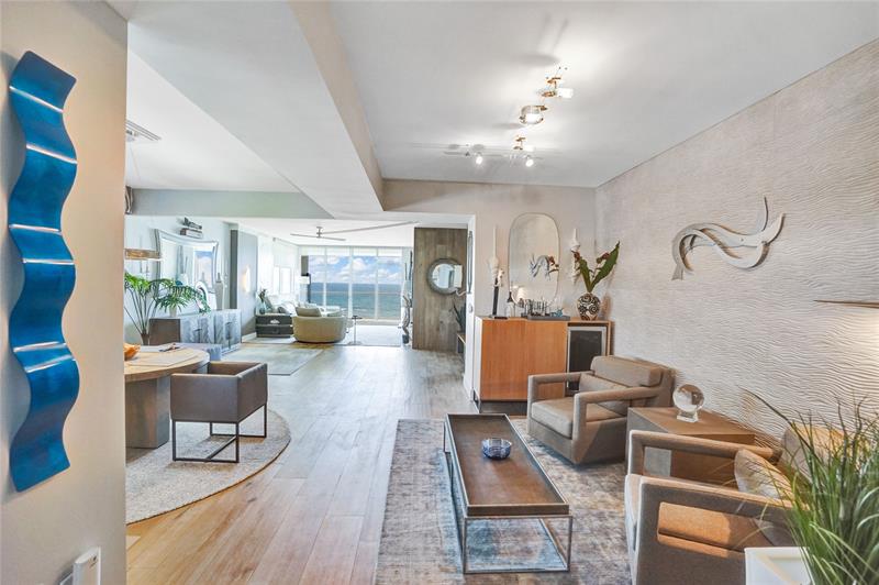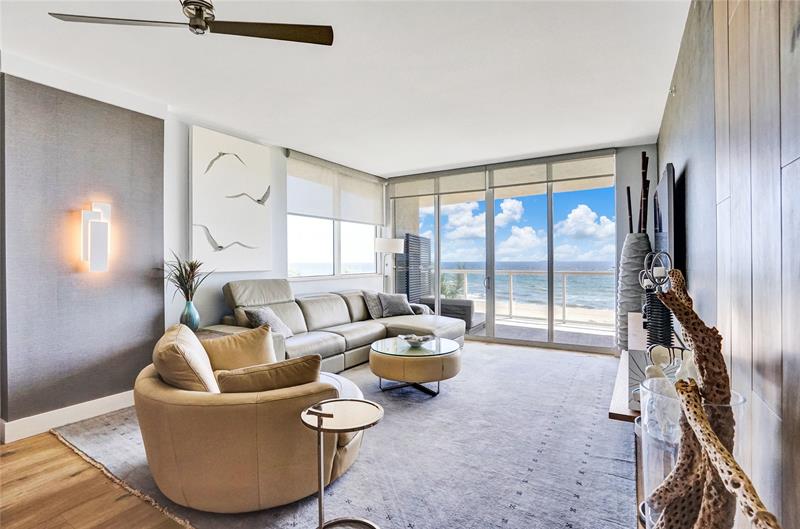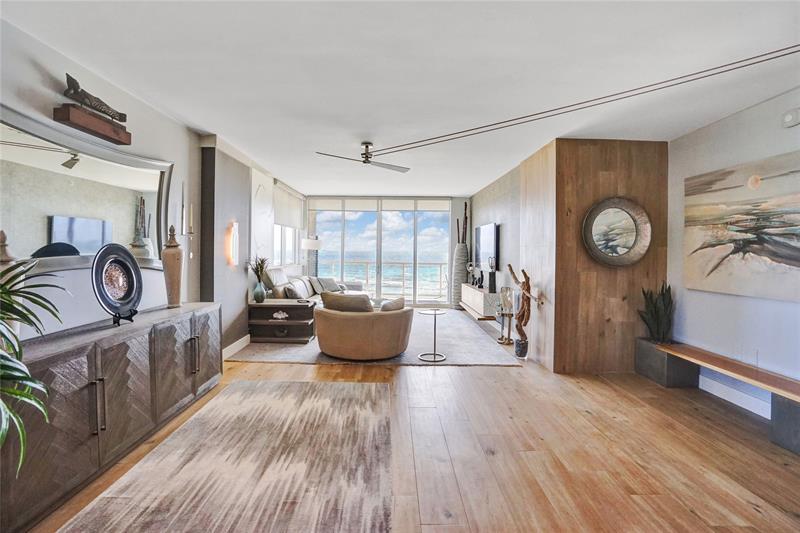 Unique private boutique oceanfront 32 unit Condominium. Quiet and highly secure building offering valet services, gym, pool, jacuzzi. This residence is a rare find with private elevator into your private foyer. This designer 2600 sf 3bedroom 2.5 bath corner unit is situated on the Atlantic Ocean with expansive balconies offering a spectacular direct ocean and city views. Split floor plan with 2 master bedrooms the 3rd a designated office. Spa like feel with many designer touches including private foyer with fountains upon entering, soaking bathtub with ocean views, Viking stove and high end appliance package, remote window treatments, whole condo water filtration system. Location, location, location! Front row seat to 4th of July fireworks and Veterans Day drone show from your balcony and