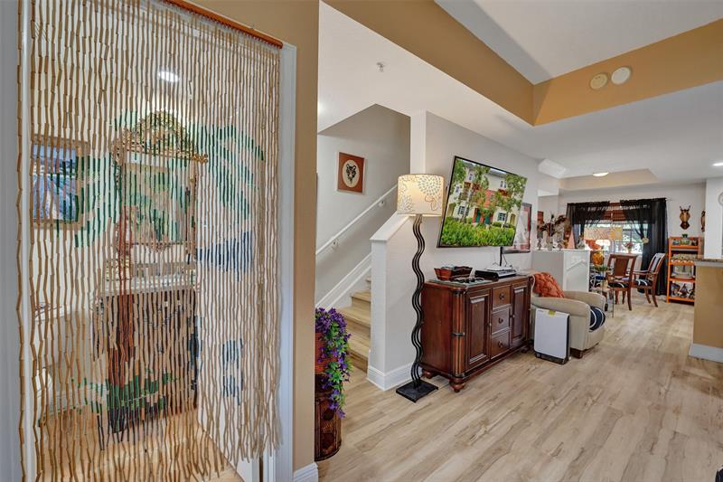 A beautiful 3 story townhome awaits you in Orchid Grove. 1st floor has a full bedroom with a full bathroom and a kitchenette. 2nd floor has a full kitchen, dining room. half bath, living room and balcony. 3rd floor has 2 bedrooms with 2 full bathrooms and laundry. Home has huge living areas that are fully furnished with a full separate living area/kitchenette on first floor that can be used as a rental opportunity. Brand new waterproof flooring, updated bathrooms, 10 foot ceilings throughout and 1 car garage. Resort style amenities, (jogging/walking path), heated pool, gym, clubhouse and wonderful nearby schools. Pet friendly, NO RENTAL RESTRICTIONS, LOW HOA FEES, HOME WARRANTY INCLUDED ON ALL APPLIANCES INCLUDING AC. CAN BE SOLD FURNISHED OR UNFURNISHED. BRING OFFERS! EASY TO SHOW!
