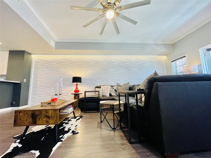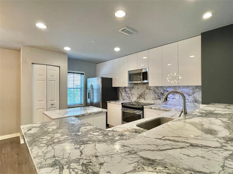 Inspired by European designers, this stunning 3 bed/ 2 full bath/ 2 half bath/ 1 car garage townhouse has superior finishes: a handmade 3D-LED-lit living room wall panel, glossy white kitchen cabinetry w/ high-end marble counter tops & backsplash, a kitchen island, SS appliances, wood floors, new AC, fire sprinklers. The 2 master beds are on the 3rd floor w/ Juliet balconies overlooking the yard, while your 3rd bedroom is on the 1st floor. The main master bath has 3D wall tiles, double sinks, soaking tub & separate shower. Family-oriented, pet friendly community w/ "olympic" size pool, gym & lake, across from a park, fire station, Publix & aprox 2 mi to the beach. Internet, cable, ADT security, roof replacement included. The unit is on a quiet street, away from traffic & RR tracks!