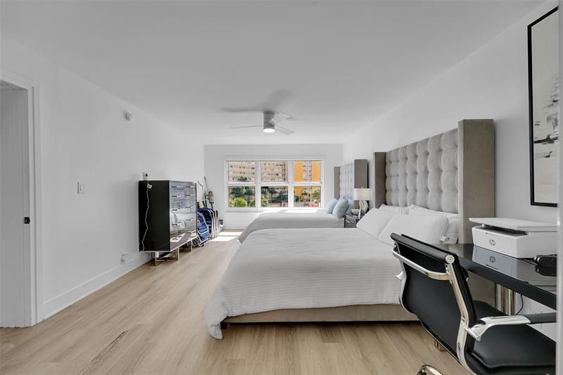 Stunning, fully updated 2 Bed / 2 Bath ocean-view condo overlooking world-famous Pompano Beach. This spacious 1,200 sq. ft. residence was completely renovated in 2023 from top to bottom. Features a spectacular open gourmet kitchen with high-end appliances, quartz countertops, and custom cabinetry. Both bathrooms were beautifully redesigned with modern finishes. The seller, a professional cabinet maker, added exceptional custom details throughout, including dramatic closets and built-ins. Enjoy ocean views from the oversized balcony and peace of mind with all impact windows and doors. Resort-style amenities include a heated pool, sauna, fitness center, BBQ area, card room, meeting room, library, and 24-hour security. Perfectly located near vibrant dining, shopping, and entertainment!