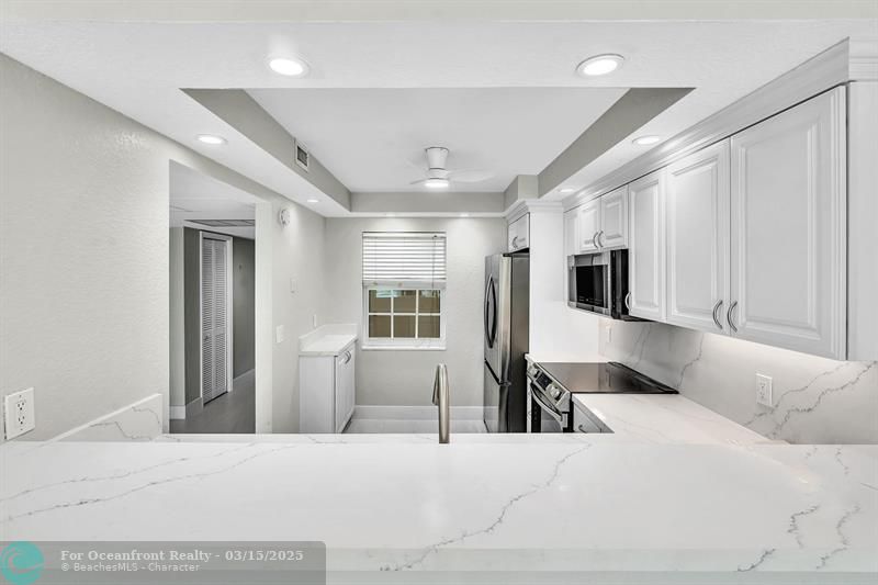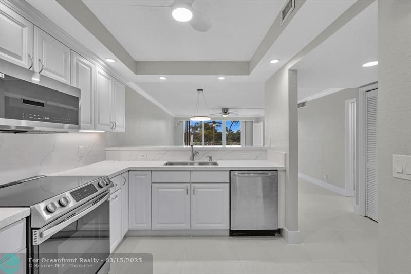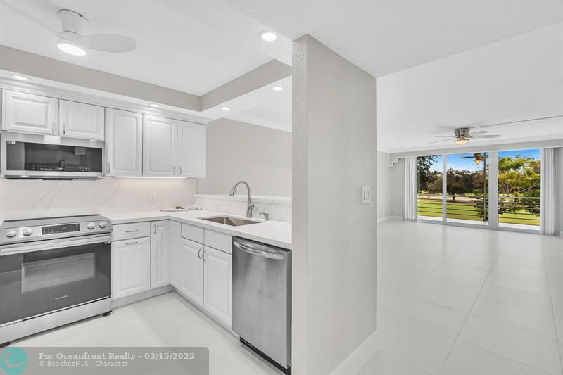 Turnkey Remodeled Three Bedroom, Two Bathroom Corner Unit. New Impact Windows Throughout, New Appliances, New Quartz Countertops, New White Luxury Tile Flooring, New Bathroom Vanities, Hardware, Toto Lavatory's. Crown and Baseboard Molding. New AC, New Electrical Panel fully Permitted, Full Size Washer and Dryer in Unit. High-speed internet and cable are included in Oaks Clubhouse community, a Serene Enclave with Lush Golf Course backdrop in Pompano Beach. The campus offers two swimming pools—one heated—surrounded by meticulously maintained landscapes, creating an oasis for leisure and activities. Recreation abounds, Pickle Ball and Top Golf across the street with onsite Publix grocery store.