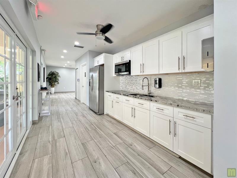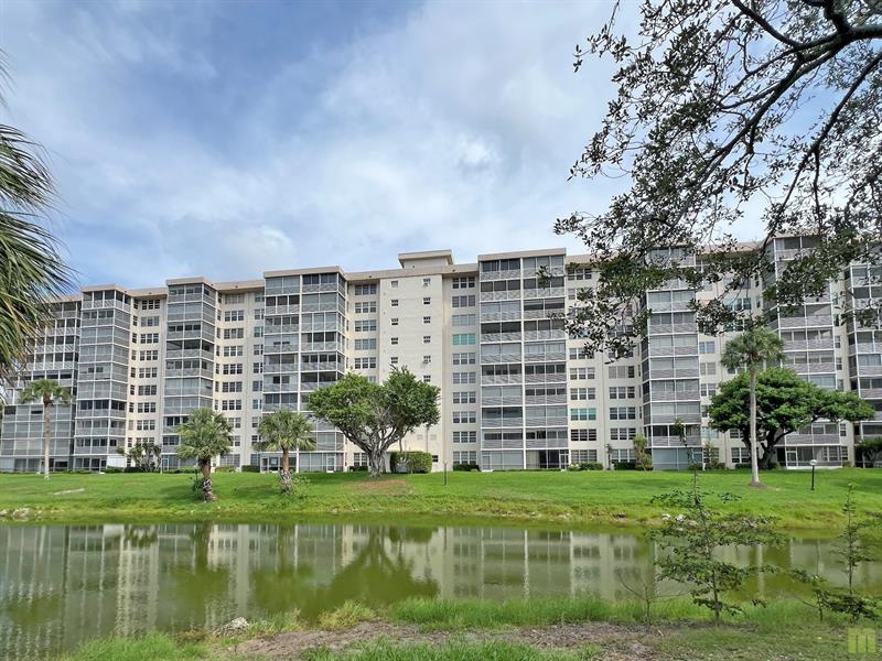 JUST REDUCED!!! -- Beautifully updated corner unit condo in Palm Aire's highly sought after Oaks Way location. High-end finishes throughout, wood shaker cabinets in the kitchen and bathrooms, matching granite countertops / vanity tops, stainless steel appliances, washer / dryer in-unit, high-impact windows & doors, plantation shutters, gorgeous wood flooring in the main living space, fantastic golf and lake views from the fully-screened balcony. Secure Lobby with fob / phone access and a short walk to the closest clubhouse and pool. Quiet, clean community close to shopping and a short drive to the new casino! HOA is $1,022/mo & includes water, basic cable & internet! Association requires 10% deposit and 1 year of maintenance to be placed in escrow for min 3 years.