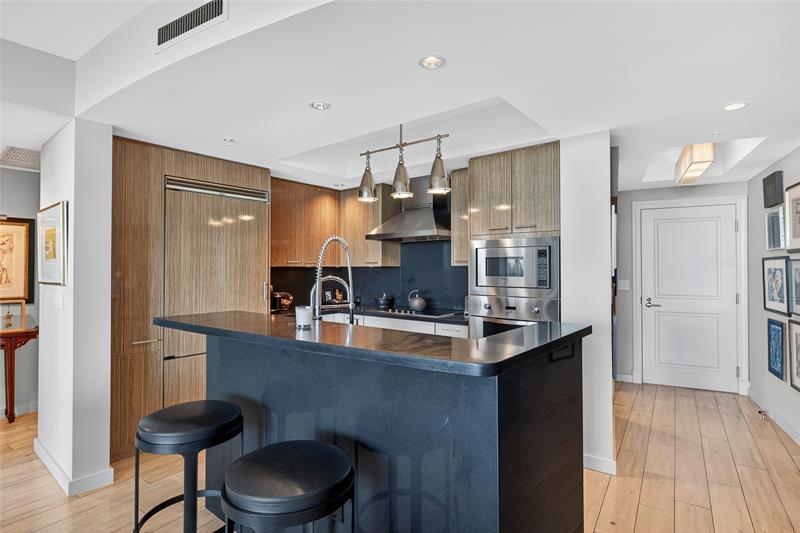 INCREDIBLE 2 BR / 2 Bath Condo located in the very HEART of POMPANO BEACH! CLOSE to Pier, Beach, restaurants and shops! This unit includes all the DESIGNER finishes: European Kitchen with GRANITE Countertops and VIKING appliances. BEAUTIFUL WOOD FLOORS throughout, MARBLE in the Bathrooms! REMOTE CONTROL SHADES. EXTRA LARGE BALCONY that extends the full length of the unit with GARDEN, POOL and Peekaboo INTRACOASTAL VIEWS! CUSTOM WINE COOLER and EXTRA ICE MACHINE. SPECTACULAR Building with all the RESORT STYLE AMENITIES: Pool, Hot Tub, Cafe (Free Breakfast), Billiard Room, Wine Vault, Theater, Fitness Center, Sauna. Air Conditioned Extra Storage Locker. This unit has 2 Parking Spaces in the Covered Garage. MUST SEE TO APPRECIATE!