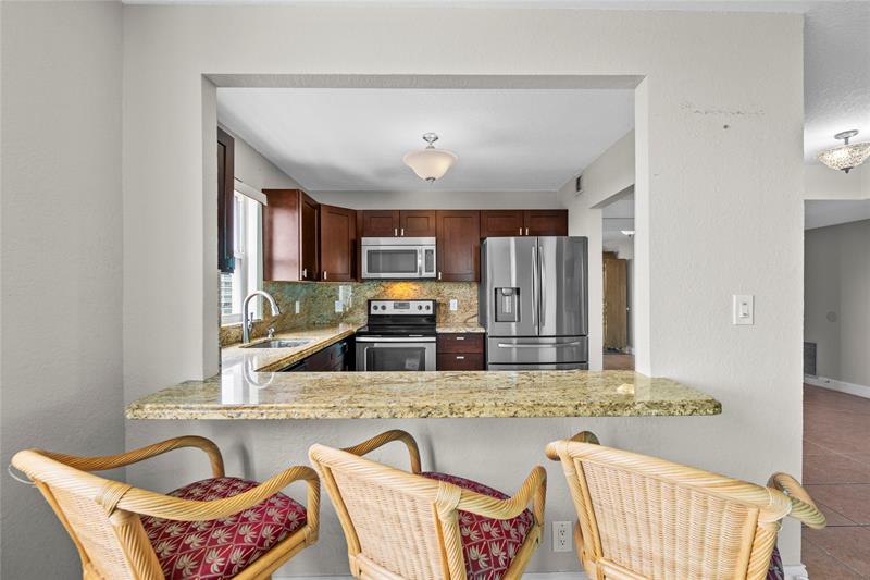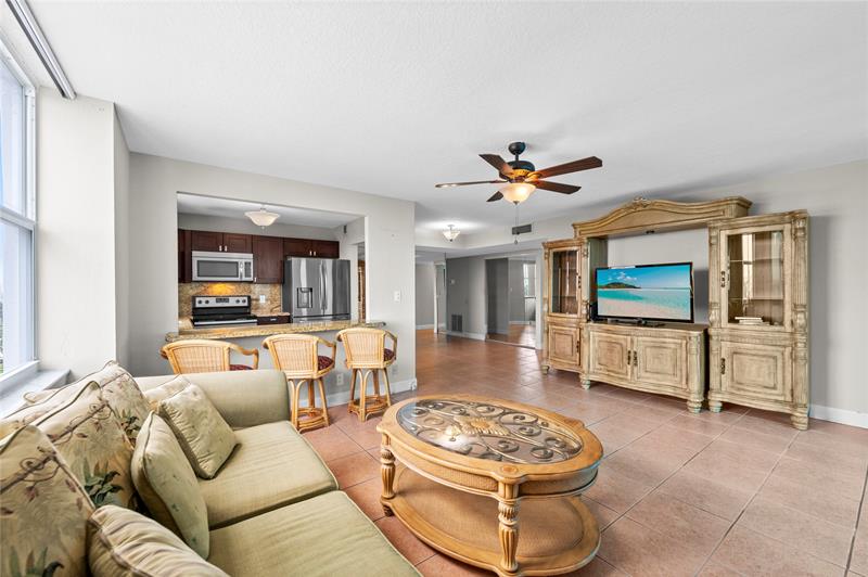 Enjoy coastal living in this beautifully maintained 2-bedroom, 2-bathroom condo just steps from the sand in vibrant Pompano Beach. This unit features a blend of tile and laminate flooring throughout, offering easy maintenance and comfort. Resort-Style Amenities Include: Beachfront recreation center with BBQ picnic area, Two fully equipped fitness centers, Two swimming pools, Billiard room, Clubhouse, On-site café serving breakfast and lunch, Bar/lounge, 24/7 secure lobby with guard, Private garage parking with elevator access. Cable and internet included in the monthly fee. Perfectly located within walking distance to shopping, dining, the fishing pier, Tiki bar, and all the entertainment Pompano Beach has to offer. The building is currently undergoing concrete restoration.