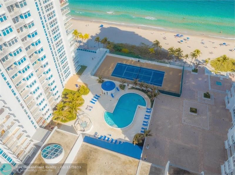 This spacious, beautifully upgraded and tastefully furnished luxury residence with ocean views is a must see. The apartment is located in an amazing beach front residence with private beach access. The unit is beautifully remodeled throughout, and it comes fully furnished (. The building offers resort level amenities including heated pool and spa (just redone in 2024); fully equipped gym; tennis/pickle ball court, sauna, beachfront barbecue area, billiard and ping pong rooms, card room, library, ballroom and top floor sky lounge with breathtaking views of the beach and the city, where you can entertain your guests. Washer and dryer in the unit. Assigned parking spot is covered. Apartment offers floor-to-ceiling high impact windows.