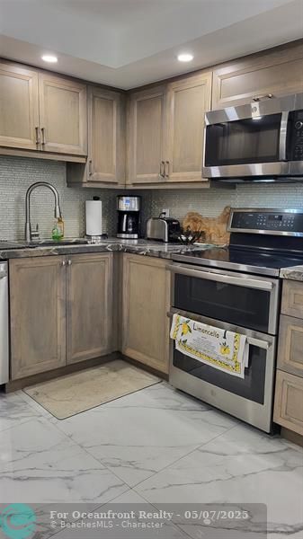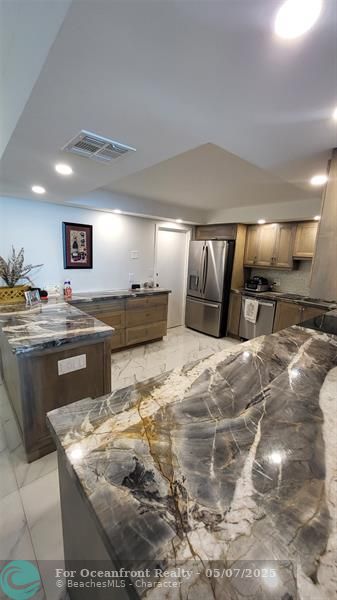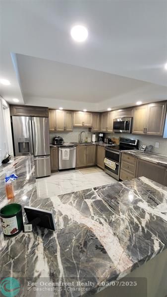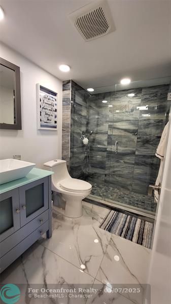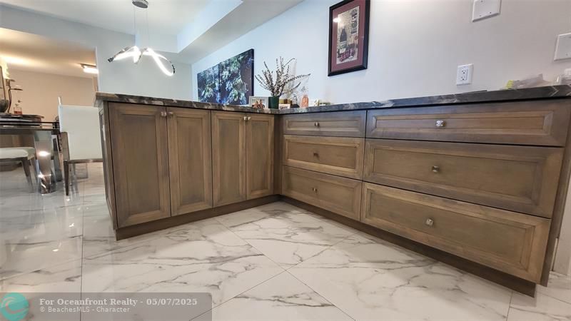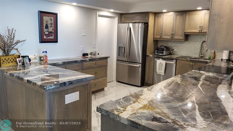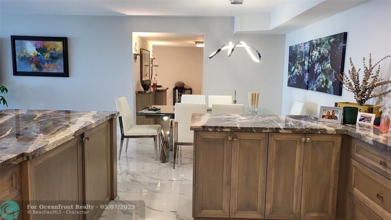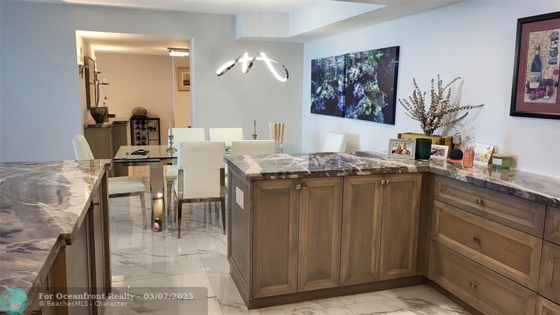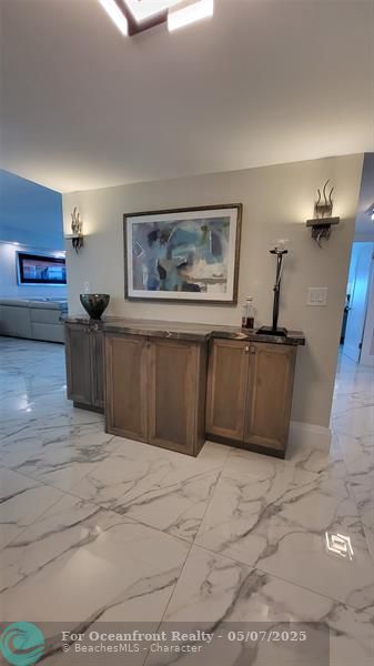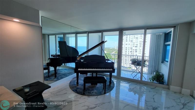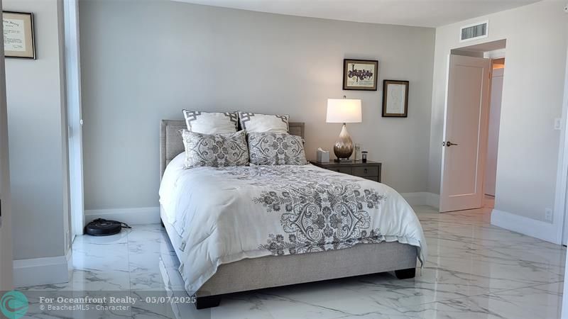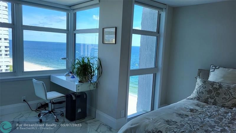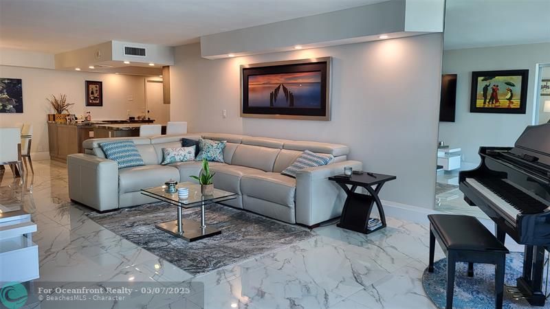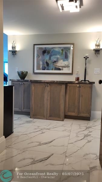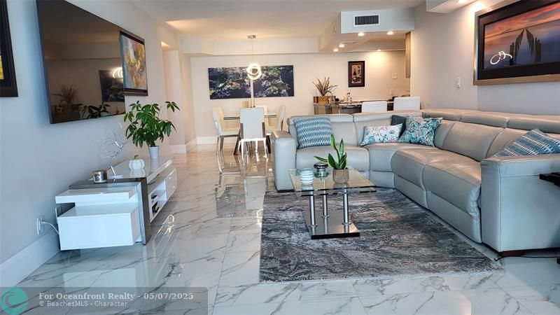 Elegance exudes from opening the front door of this remodeled & furnished 2/2 you have been looking to call your home! The foyer greets with custom, high end marble floors, custom cabinetry & gorgeous finishes which carry throughout the entire unit. The owner spared no expense, creating an exquisite unit with outstanding views. A few more steps in opens up into an expansive living dining area leading to a parlor grand piano & balcony. A chef's kitchen appointed with GE Profile appliances including a double oven & generous elegant top of the line stone counter tops. Both bathrooms are also fitting the most discriminating taste. Enjoy beautiful ocean view from the entire main bedroom and its large walk-in closet with built-ins as well. The guest bedroom has a cool bonus desk/reading alcove.