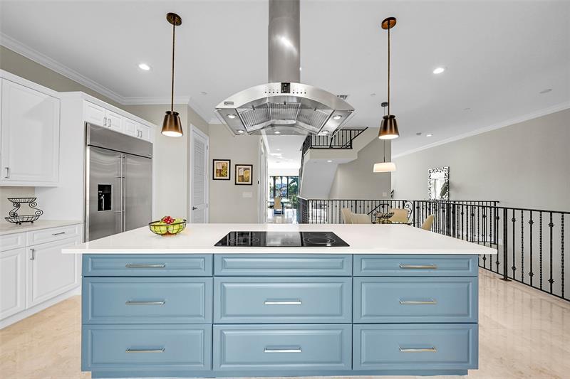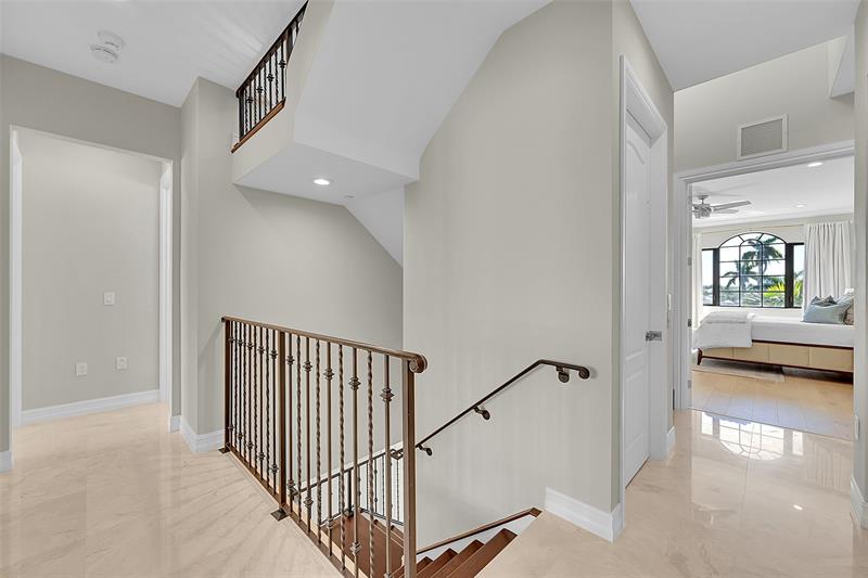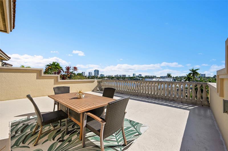 Stunning, recently updated, furnished 4-story luxury townhome with widewater views of Lake Santa Barbara, dock and assigned boat slip. Direct ocean access--no fixed bridges, minutes to Hillsboro Inlet. Private elevator to all levels, high ceilings, marble and hardwood floors. Gourmet kitchen with quartz countertops, GE Monogram appliances, oversized cook-top island. First floor includes a 2-car garage, foyer, half bath, large living area, office/exercise room/4th BR, walk-out kitchen overlooking the patio and dock. Second floor offers spacious kitchen, dining and living areas, laundry room/pantry, and half bath. Third floor hosts the primary suite with kitchenette, two bedrooms with walk-in closets and a large full bath. Expansive rooftop terrace provides amazing water/city vistas.