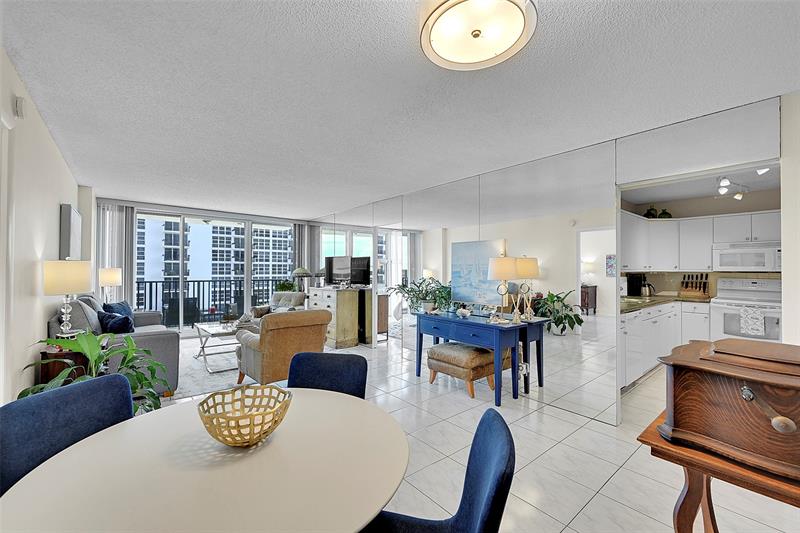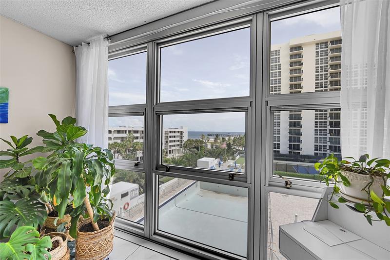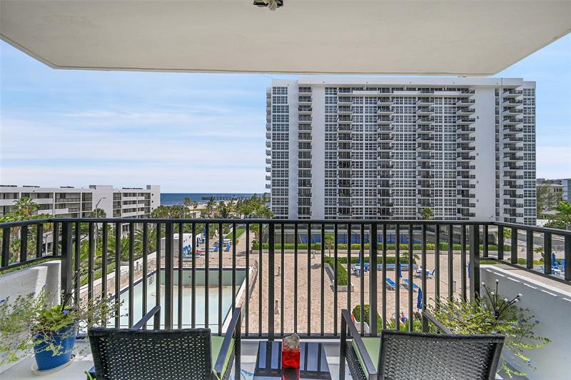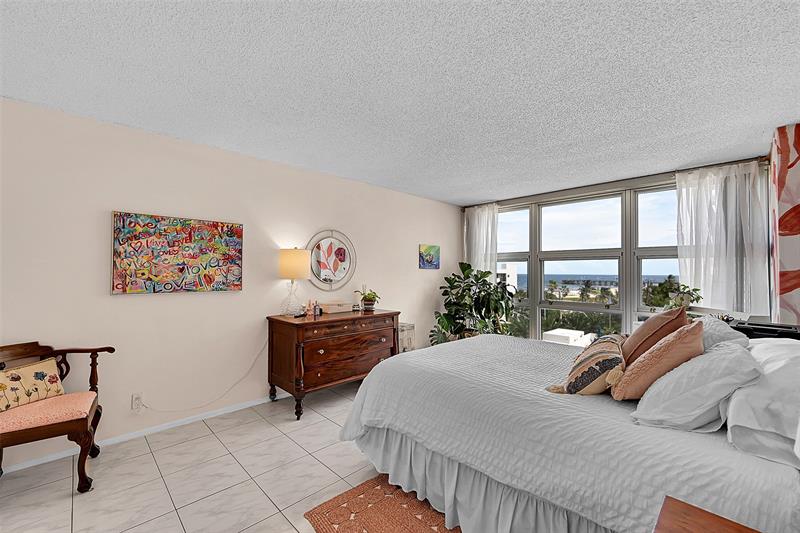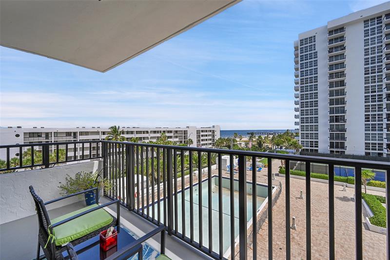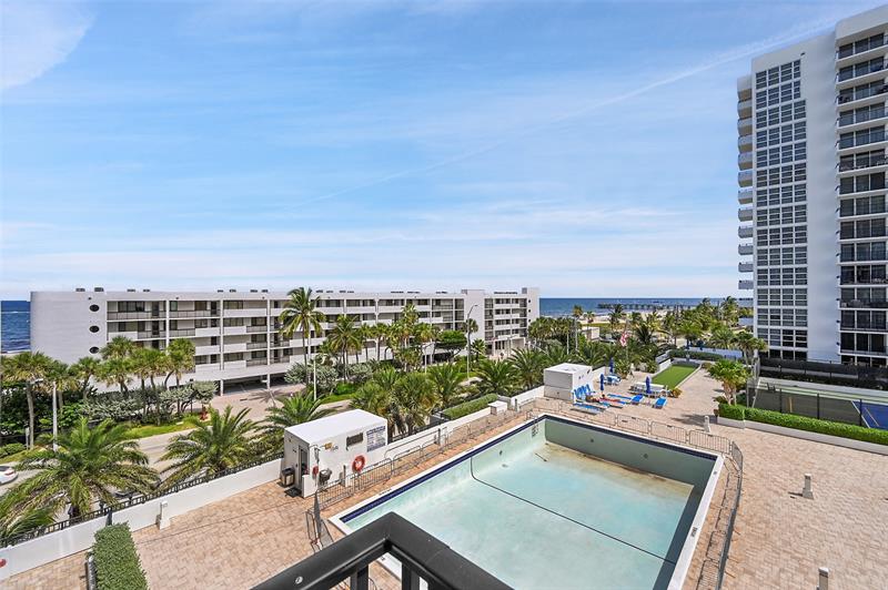 Direct ocean and pool views from this fully renovated condo with floor-to-ceiling hurricane-impact windows and doors. Bright, open layout features a modern kitchen with white cabinetry, quartz counters, and white appliances. Split-bedroom design offers privacy, two updated baths, and two large walk-in closets. Tile floors throughout. Enjoy resort-style amenities—24/7 concierge, fitness center, tennis, pickleball, bocce, game room, BBQ area, and garage parking. Walk to the beach, Pompano Pier, shops, and dining. Desirable southeast exposure. All assessments paid by seller; building improvements near completion. Cable and internet included in association fee.