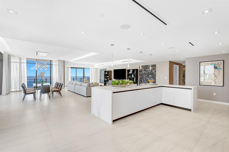 Penthouse 03 at Solemar will take your breath away, over 4600 sqft of interior living, wraparound balcony on the ocean, and incredible rooftop terrace with unobstructed views, hot tub, and fully equipped summer kitchen. 4 bed+Den+Staff quarters, 5.2 bath smart home with custom lighting, window treatments, and sound system. Offering ocean and intracoastal views throughout, seamlessly blending indoor & outdoor living. Serene primary suite overlooking the beach with sitting area, wet bar, generously sized walk-in closets, and spa like bathroom. Resort amenities: 2 pools, state of the art gym, screening room, 2 story club house, bbq area, pavilions, cafe with coffee & light bites, concierge, valet. Pet friendly. Close to beachfront & waterfront dining, boat club, Hillsboro Inlet and more