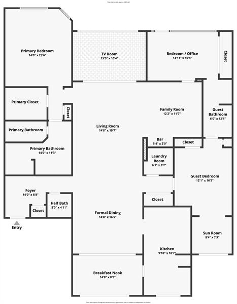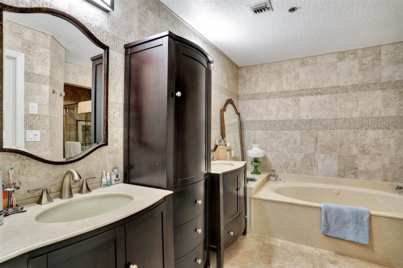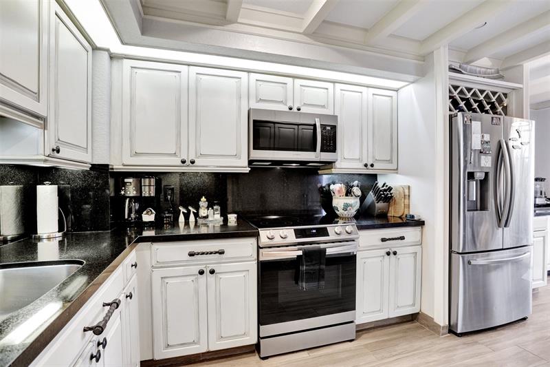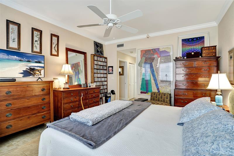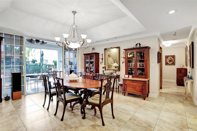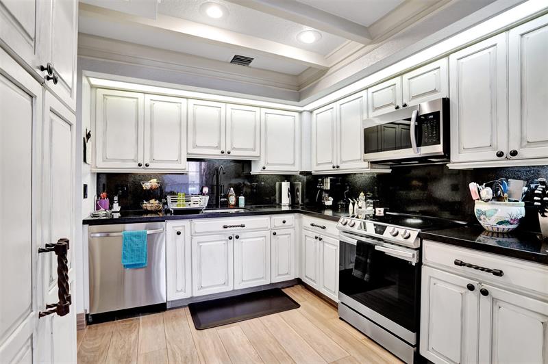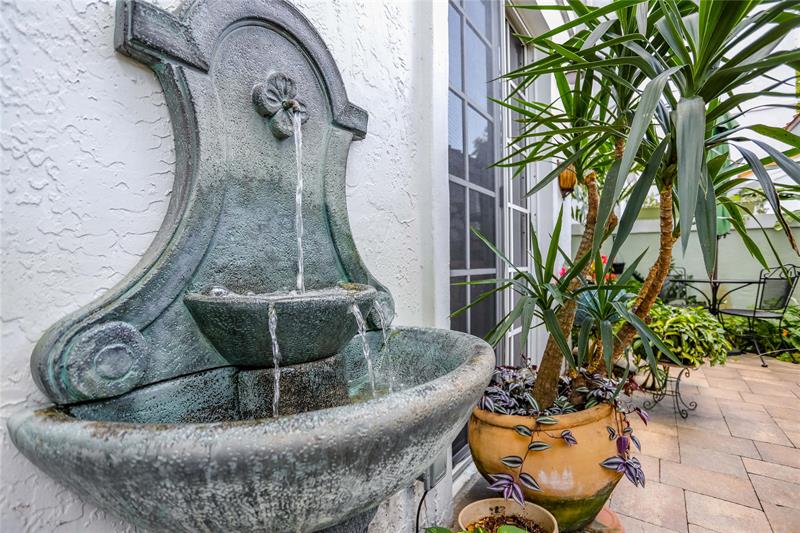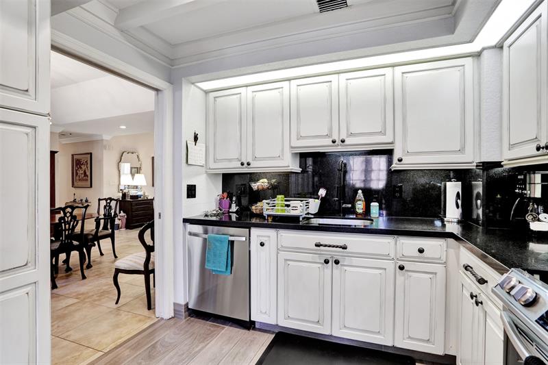 Perfect first-floor featuring a private, charming outdoor garden that offers the feel of a single-family home with the security of condo living. Enclosed glass patios expand the living space. The primary bedroom and office/third bedroom overlook the golf course, while the secondary bedroom includes a sitting area and direct access to the private garden. The spacious primary suite offers a large walk-in closet and an en-suite bath with dual sinks, a Roman tub, and a separate shower. Wet bar in the family room, an interior laundry room with full-size washer and dryer, abundant closet space, and a dedicated storage room. One covered parking space plus ample parking. Gated with a secured lobby, an additional private entrance from garden, and a clubhouse with heated pool just a short walk away.