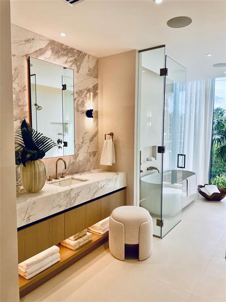 W Pompano Beach redefines oceanfront living with a perfect balance of exclusivity and access. As a Residence owner, you enjoy a private collection of amenities reserved solely for you. Enter your home through a residents-only porte-cochère, with the convenience of two self-parking spaces, a private lobby, concierge, and direct-access elevators to your residence. This 4 bed+den corner layout offers 3,462 SF of thoughtfully designed spaces. Enjoy 180-degree views of the ocean, city, and Intracoastal. The chef's kitchen features custom Italkraft cabinetry, Wolf and Sub-Zero appliances, a gas range, and selection of marble countertops. The primary bathroom offers a spa-style wet room with soaking tub and ocean views to elevate the experience.