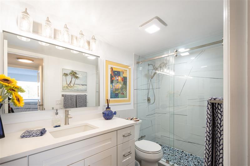 Fully renovated condo on wide intracoastal in highly sought after Hillsboro Shores just south of the Hillsboro Inlet and Lighthouse. Modern move in ready interior featuring quality craftsmanship kitchen cabinets including 2 large pantries, quartz countertops, backsplash, and upgraded LG appliances. The bathroom has been fully modernized with large vanity, revamped tile, lighting and fixtures. Premium waterproof luxury vinyl plank flooring throughout. the popcorn ceilings removed for a more modern, clean finish. All new plumbing and electric. Savor the coastal breezes from your private balcony. Amenities include sparkling pool, sauna, and outdoor deck & grill and available beach access. This is coastal living at it finest!