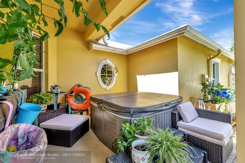 CAN BE PURCHASED THROUGH FLORIDA HOMETOWN HEROES DOWNPAYMENT ASSISTANCE PROGRAM. Beautiful 3-Bedroom, 2.5 bath townhome is the CARLYLE model and an end-unit with master bedroom on ground level. Upgrades, include hurricane impact windows and doors throughout, central vacuum, vaulted ceilings, oversized walk-in closet in the owner's suite, fenced backyard, reverse osmosis and water softener, rain barrel to water lawn and shrubs to save on municipal water, exterior gutters. Jacuzzi can convey with acceptable offer. Master bedroom is on the ground level and two bedrooms are on the second level with an added loft/media room. HOA payment covers lawn maintenance, roof replacement, exterior paint, exterior insurance, roof repairs, alarm, cable and phone landline.