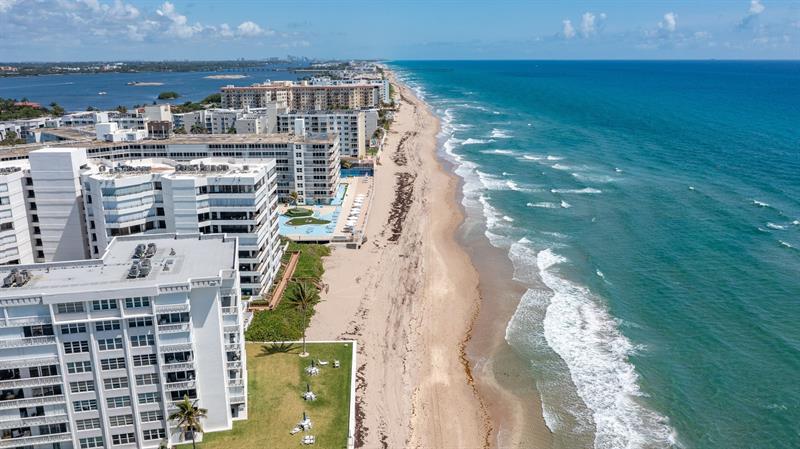Every single day you get to enjoy the gorgeous view of the amazing Florida sunsets from the balcony and pool! Relax & savor the peaceful views of the Intracoastal or walk across the street to the deeded beach access & catch some rays, listen to the ocean waves or watch the sunrise! Well maintained 2 bedroom/2 bath condo - updated kitchen with wine refrigerator, extra storage, granite counters & wood shaker cabinets. Wrap around balcony with hurricane shutters. Community offers assigned parking, pool, sauna, large meeting room with full kitchen &management on site. Fees include basic cable, pool, exterior maintenance, sewer & water. Trash chute located on each floor. Service & Emotional Service Animals are allowed. Milestone & Structural Integrity Reserve Studies have been completed!!