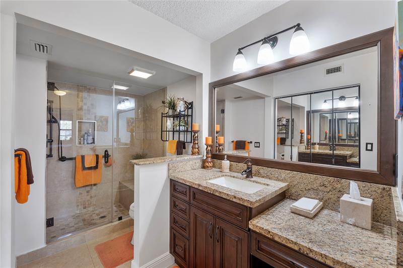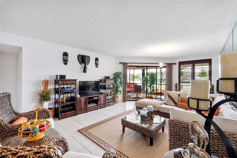 Immaculate, light-filled upgraded 2bed/2bath ground floor condo in the heart of Tamarac. Home entry way features 7 decorative walk way lights as you enter a lush flower garden. Interior features custom wood shutters, blinds, wood & woven wool treatments, granite countertops. Designer touch kitchen/dining fixtures, adjustable wall lighting, and ceiling fans throughout. Enjoy the scenic lake view perfect for relaxation. With accordion hurricane shutters (windows & patio), interior shutters for impact sliders in the sunroom, and screened exterior patio. Enjoy resort-style amenities: clubhouse, indoor/outdoor heated pools, tennis, pickleball, theater, fitness & art classes. One resident must be 55+. Move-in ready!