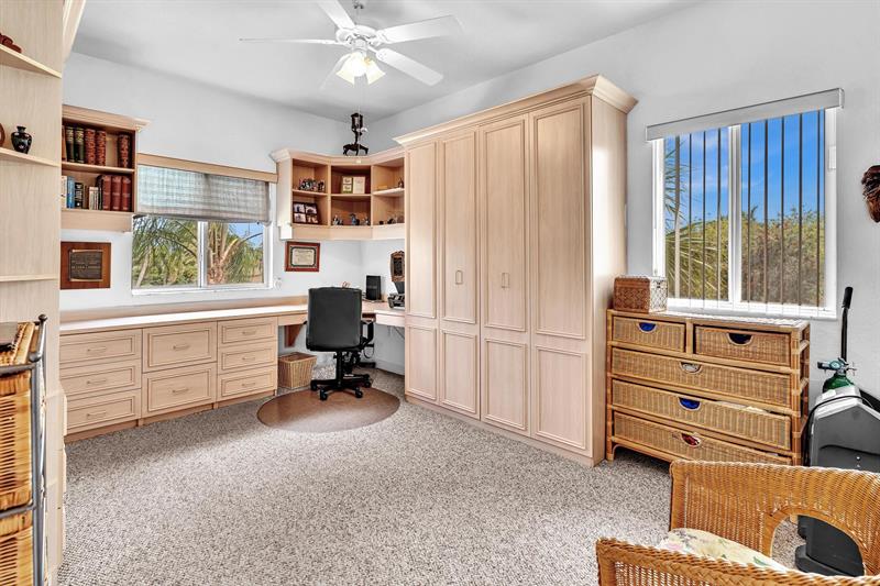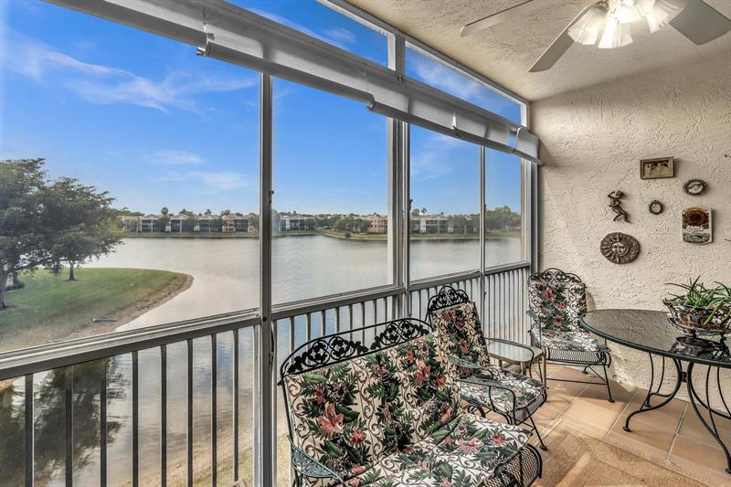 *Stunning Water View Corner Unit* 1986 sq. ft * This lovely home creates a fantastic and welcoming atmosphere with two bedrooms & two baths. The 2nd bedroom includes a Murphy bed for added convenience. There is a family room/den/formal dining room, which can also be used as a third bedroom. The kitchen features white cabinets & a custom island. Extra freezer. Tile flooring throughout the living area enhances the gorgeous open layout. The master bedroom boasts a spacious walk-in closet & a large soaking tub. Include a private laundry room & storage. Enjoy your front screened patio that greets you before getting to your front door & 2nd large balcony overlooking the water view, which is excellent for relaxing. Southampton is the only community that has a gym on the site. Guard at the gate.