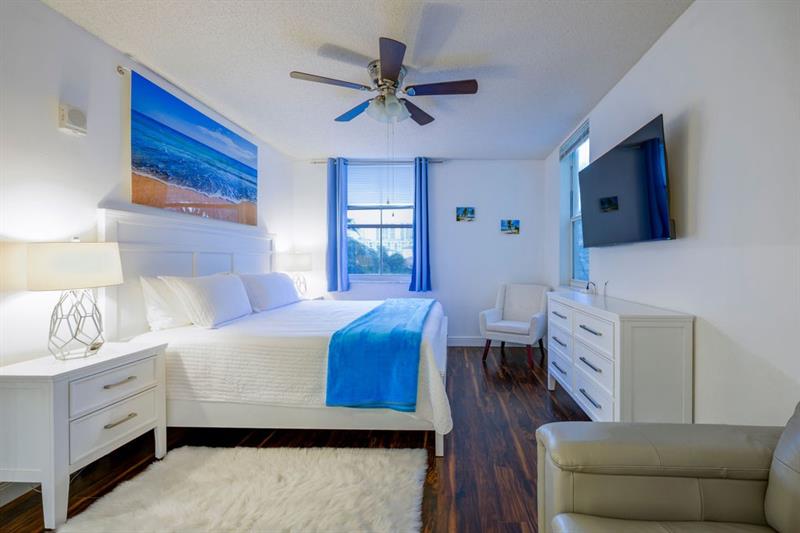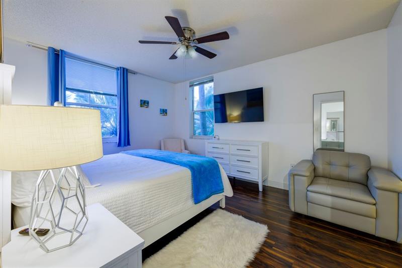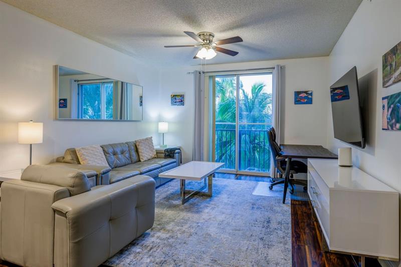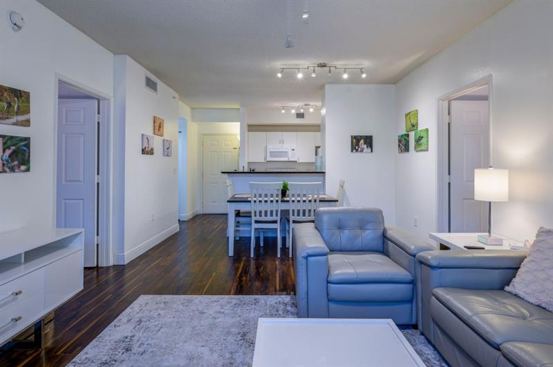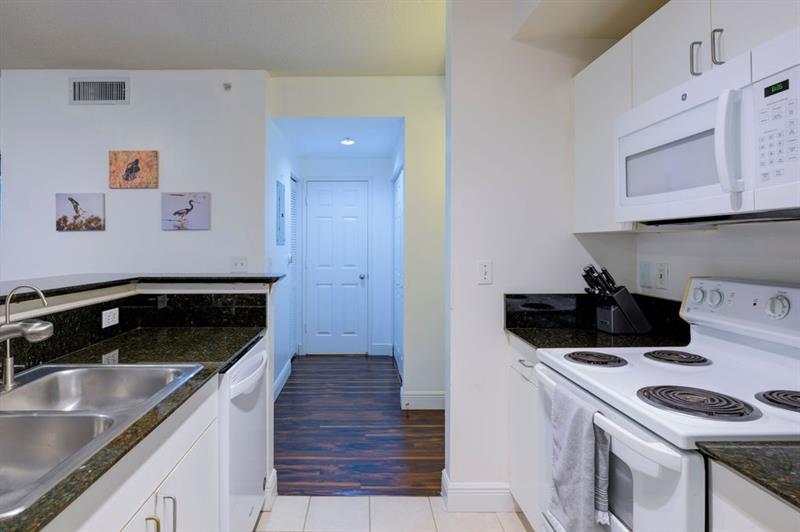 Bright open layout, fully equipped kitchen, in-unit washer/dryer, balcony with city and pool views.