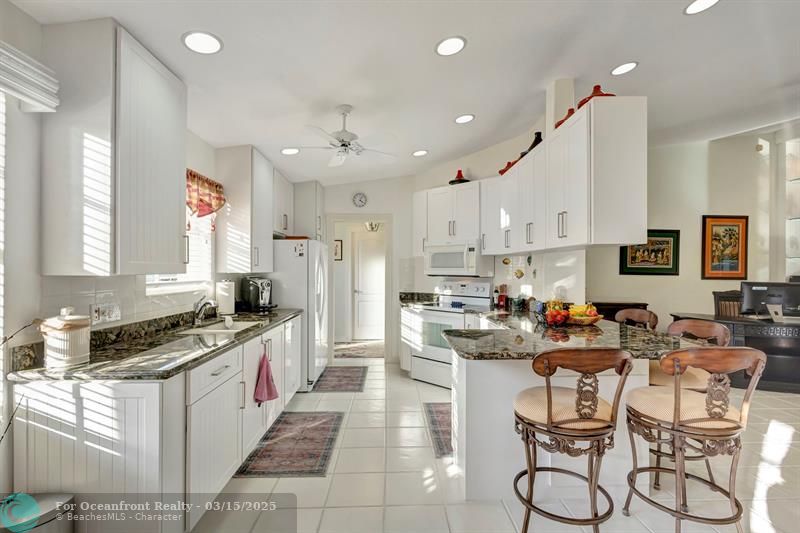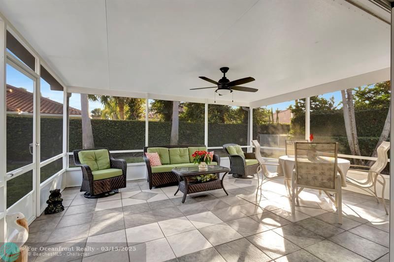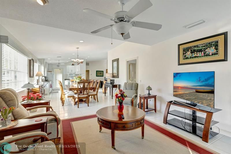EXTENDED CAPRI, spotless & meticulously maintained; only lived in by the owners a few months a year. Newly painted in every nook, immaculate grout, brand new gutters, brand new dishwasher, newer A/C & water heater. Kitchen has new cabinets, pull out drawers, neutral granite adorns the counters & the floor to ceiling built-in wall unit, all done so tastefully. LVP has been added to both bedrooms. An outdoor enclosed patio w/roof was added to enjoy the beautiful surroundings in the fully fenced backyard, under a full roof. The home is on a large lot. Wine aficionados will love the 200 bottle fridge - "top of the line". The sparkling garage is air conditioned w/a high gloss epoxy flooring; can be a full room in itself. Enjoy the 12 miles of scenic views in your gated resort style community.