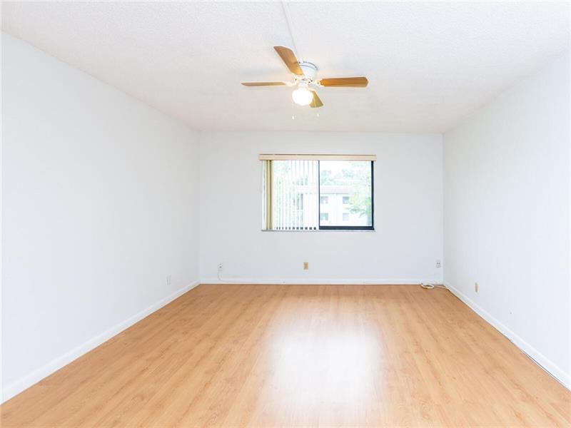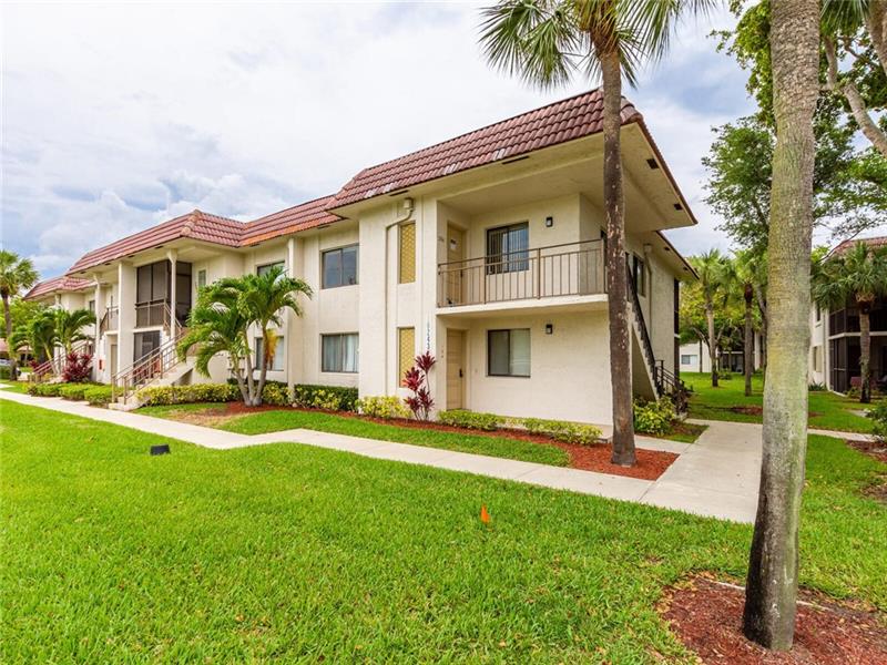 Beautiful Corner Unit in Prime Saddle Club Road Location! Bright and airy upstairs unit featuring spacious social areas with tile floor & bedrooms with laminate flooring. The large kitchen offers an eat-in area, perfect for casual dining. Split bedroom layout provides added privacy. Both bathrooms feature showers only & have been updated with new vanities. Enjoy screened balcony ideal for relaxing. Located in a highly desirable area w/only a few condominium bldgs., surrounded by lush landscaping & the golf course offering a serene and private setting. Includes 1 assigned parking space with additional parking available (max. of 2 cars per unit). Roof for this bldg. will be replaced in Feb. 2026 as per owner. Membership to Bonaventure Town Center Club is mandatory 2025 fee per Year is $385.