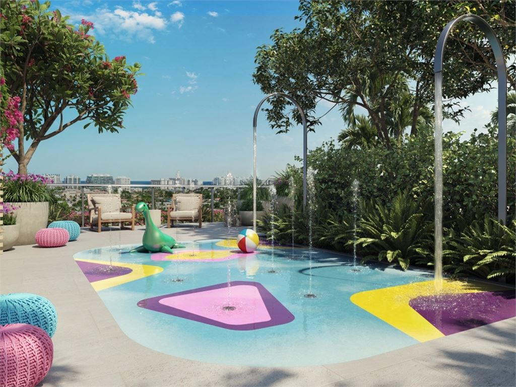 The lifestyle at La Baia North is crowned by its spectacular 10,000-square-foot rooftop amenity deck, a true paradise in the sky. Imagine a sun-drenched morning spent lounging by the resort-style swimming pool, followed by an afternoon of tranquil relaxation in the heated adult soaking spa. As evening descends, the outdoor summer kitchen and dining area becomes the perfect venue for alfresco entertaining with friends and family, all while overlooking the breathtaking, panoramic views. This incredible space is thoughtfully designed with separate, dedicated areas for both adults and children, including a whimsical splash pad and play lawn, ensuring a five-star experience for all residents.