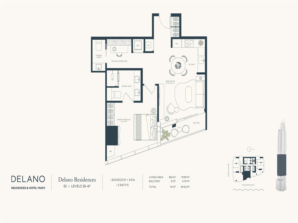 Whether you are seeking a turnkey investment through the D Collection or an ultra-exclusive lifestyle in the D Residences, Delano Miami offers an unmatched residential experience 850 feet in the air.