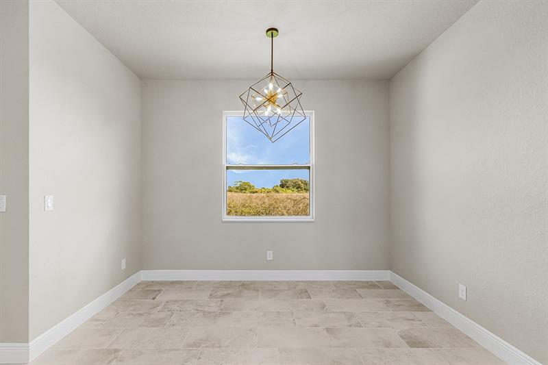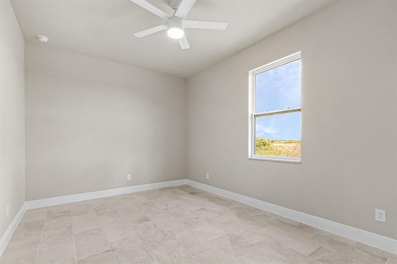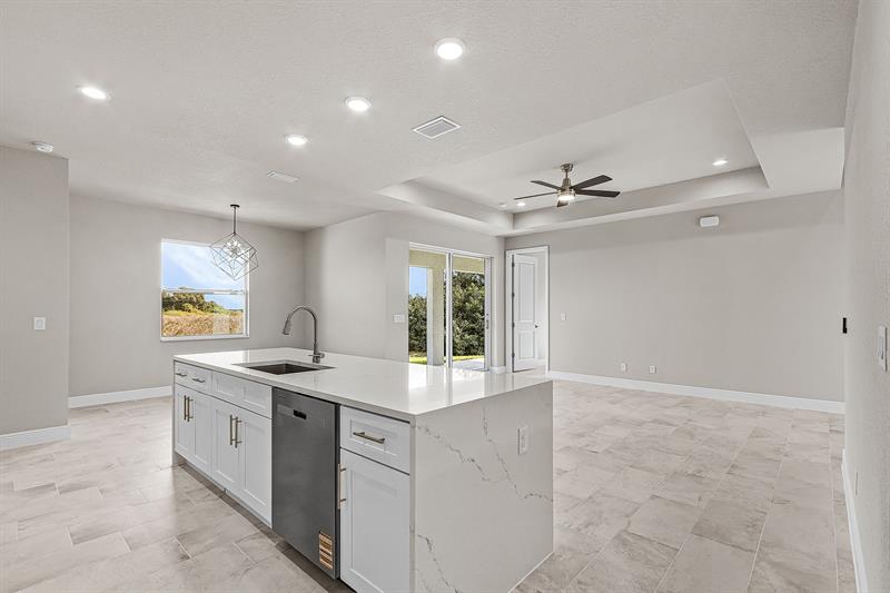 Welcome, a thoughtfully upgraded new construction home that feels easy and inviting the moment you arrive. The metal roof and lush landscaping with irrigation create great curb appeal, while high ceilings and impact windows and doors fill the home with light and peace of mind. Inside, the kitchen is clean, modern, and functional with solid surface countertops and stainless-steel appliances, perfect for everyday living or casual entertaining. Step outside to the tiled lanai, an ideal spot to enjoy quiet mornings or relaxed evenings. Brand new, beautifully finished, and designed for comfort. —schedule your showing today and see why this one stands out.