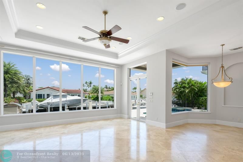 Welcome to Golden Harbour’s best-priced Waterfront Estate. A striking marble staircase and soaring ceilings welcome you with waterfront views. The chef’s kitchen opens to additional living and dining areas ideal for intimate gatherings or grand events. The primary suite offers sweeping views, a lounge, dual walk-in closets and a spa-inspired bath. Five bedrooms and six-and-a-half baths include a private guest wing perfect for an office or in-laws, plus an additional office with more water views. The home also features a new roof. Outdoors, a summer kitchen overlooks a heated pool/spa, and the concrete dock complements a 60' main dock with 20' extension. Moments from the beach, Mizner Park and The Boca Resort, this home defines seaside living.