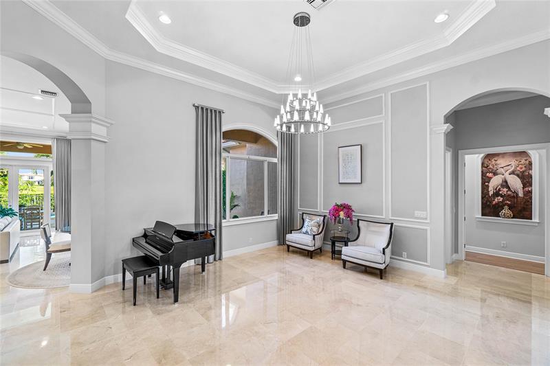 Elegant 4BR/3.5BA home plus office & den in the prestigious Azura community. Enjoy serene preserve views, two new high-end AC systems (2025), and a remodeled kitchen (2019) with Italian cabinetry, quartz countertops & Wolf/Sub-Zero appliances. Features include marble floors, high ceilings, crown moldings, custom lighting, built-in closets & impact windows. Whole-house generator (2021). Cabana bath leads to a private saltwater pool with fountains, water features, outdoor kitchen & spacious patio. Top-rated school district.