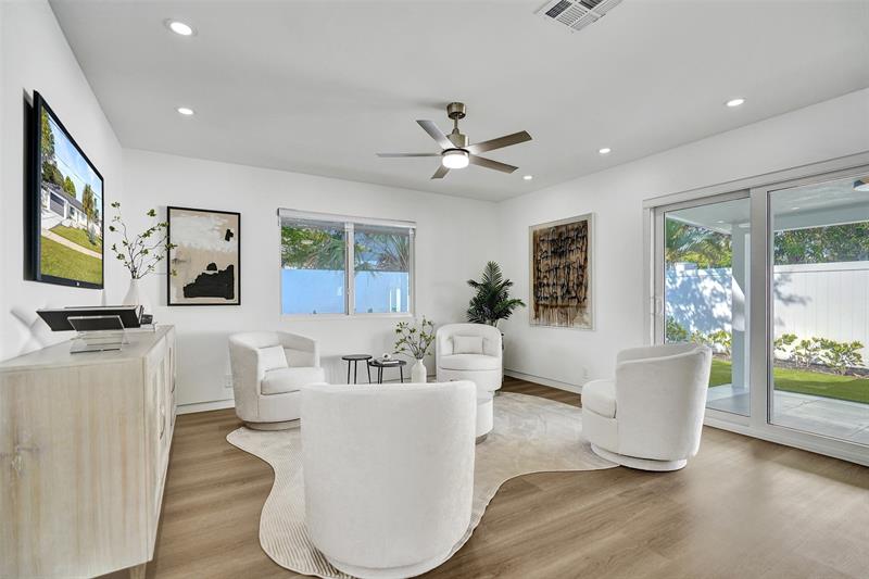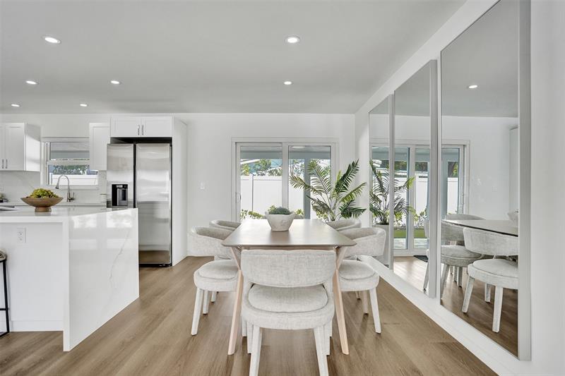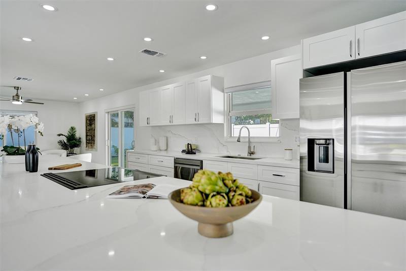 Welcome to 699 NE 70th St! Situated East of Federal Highway, in the exclusive + highly sought after community of Boca Harbour, this reimagined 3 Bed + 2 Full Bath masterpiece has been professionally designed and meticulously remodeled throughout. Updates include all new impact windows + doors, new flooring, new plumbing, new electrical, etc. The open and oversized chef's kitchen is nothing short of spectacular and features a breathtaking 15' island + counter dining, all new cabinetry + new appliances + beverage wine cooler. The primary suite features an all new en suite bath with custom oversized shower + direct rear lounge access. The spacious + private rear lounge features and oversized covered patio terrace + all new natural turf + new jacuzzi spa. Will not last. Let's Take A Look!