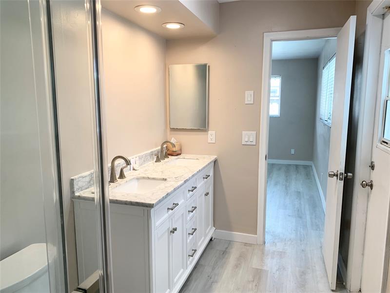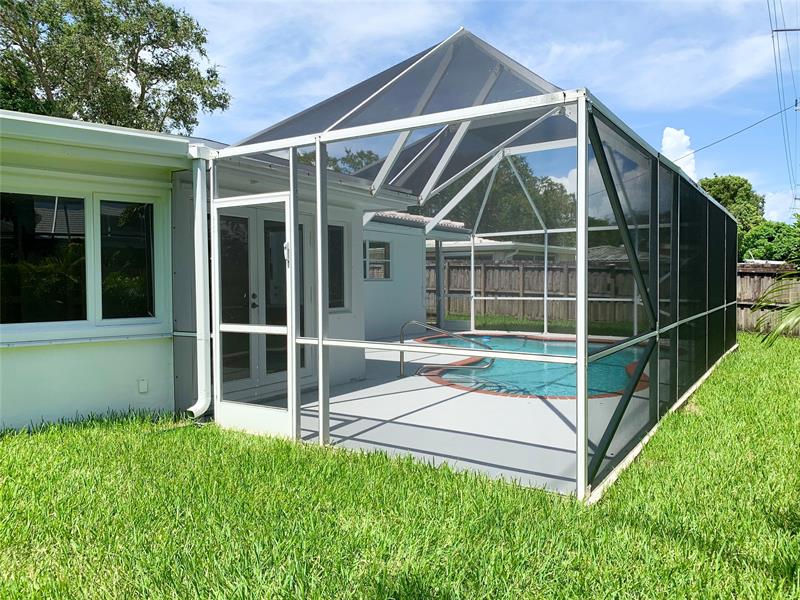 Amazing pool home, nestled in the highly desirable Royal Oak Hills community in East Boca Raton! This stylish 3-bedroom, 2-bathroom house features an open-concept floor-plan with newer plank flooring throughout. Step through double french doors into your private tropical backyard oasis, complete with a newly remodeled screened-in pool, perfect for relaxing or entertaining year-round and a fenced-in yard. NEWER bathrooms, white quartz kitchen countertops, large deep sink, flat roof, a/c, water heater and electrical panel, for peace of mind. A spacious laundry room with an additional wall of storage. Garage was converted to a 3rd bedroom w/ac mini-split. Great location, A-rated schools, close to vibrant downtown Boca Raton and just over 1 mile to the beach.
