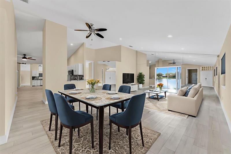 Welcome to South Florida living at Trends of Boca! Experience serene lake views from your living room and primary bedroom, with abundant natural light pouring in through high vaulted ceilings. This beautifully maintained home sits in a peaceful, family-friendly neighborhood known for its lush greenery and quiet streets. With a newer 2022 roof and a full water filtration system, this home is ready for you to make it your own. Enjoy community amenities including a pool, and tennis courts, all with low HOA fees. Ideally located near A-rated schools, shopping centers, and restaurants. Come see why this home and community stand out!