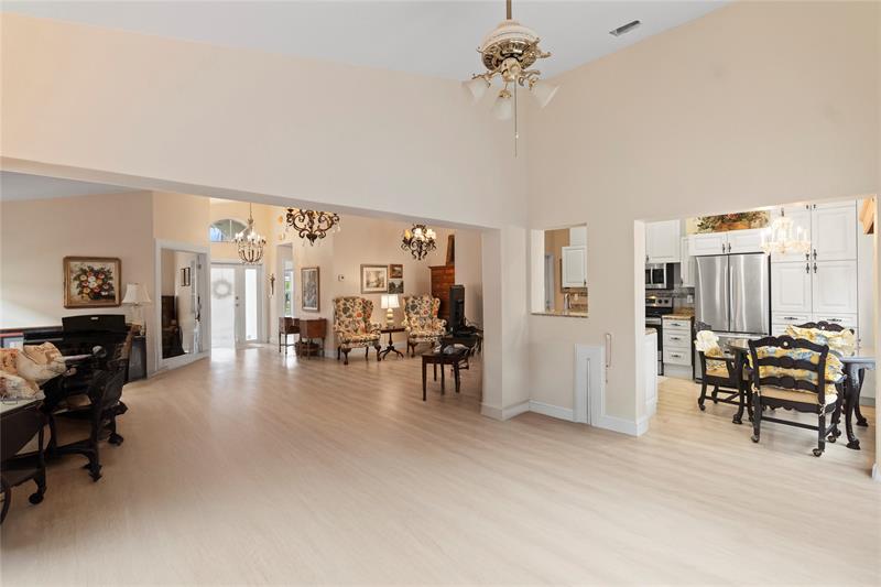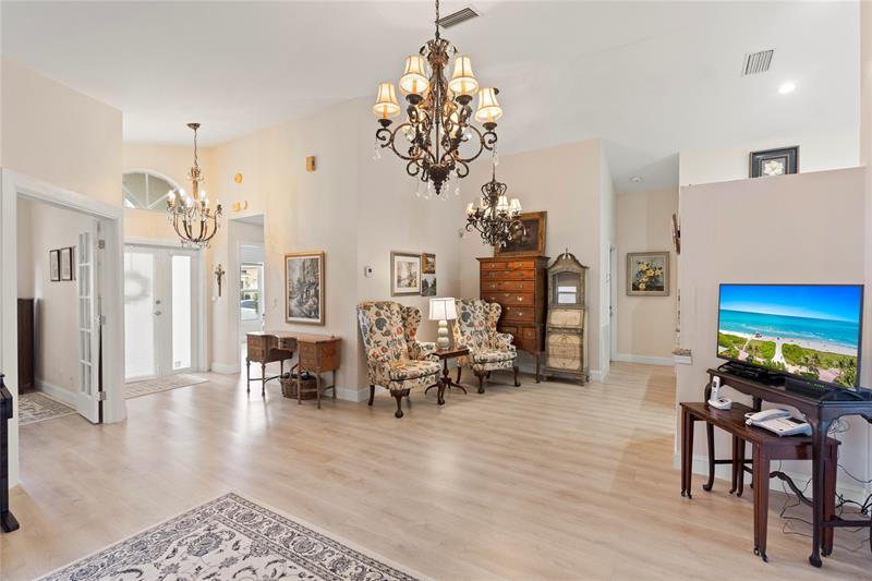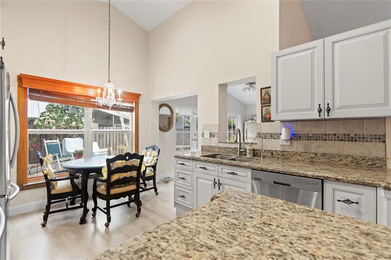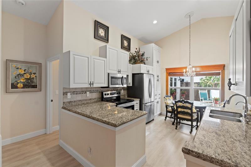 This Home Features Both New (2023) High-Impact Windows And French Doors For Peace Of Mind And Energy Efficiency. The Kitchen Boasts Custom, Solid Wood New High End Cabinets, Granite Countertops, Stainless Steel Appliances, Perfect For Everyday Living And Entertaining. Enjoy New Flooring Throughout, Updated Smooth Finish Vaulted Ceilings that Enhance The Spacious Feel, & A New (2023) HVAC System For Year-Round Comfort, Brand New (12/25) Water Heater,