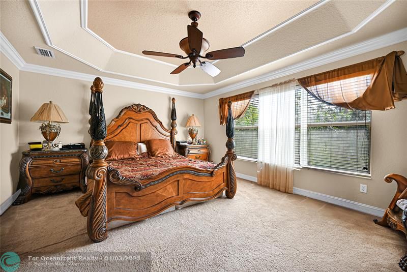 This stunning 4-Bedroom, 2.5-Bathroom home sits on a spacious, fully fenced 8,100 sq. ft. corner lot in the prestigious Canyon Springs gated community. Built in 2007, it features a grand entryway with 20-foot ceilings and an open-concept kitchen with granite countertops, stainless steel appliances, and ample cabinetry. The expansive master suite offers a sitting area, his and hers walk-in closets, and a spa bathroom featuring a whirlpool tub, a separate shower, and his and hers sinks. Additional highlights include a large laundry room, storm shutters, and a 2-car garage with side-door entry. Enjoy resort-style living with amenities including a clubhouse, pool, state-of-the-art gym, nursery, tennis courts, event halls and much more! Motivated Seller!! Schedule your exclusive tour today.