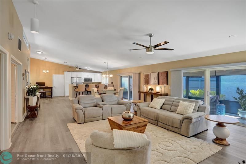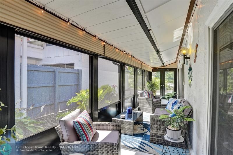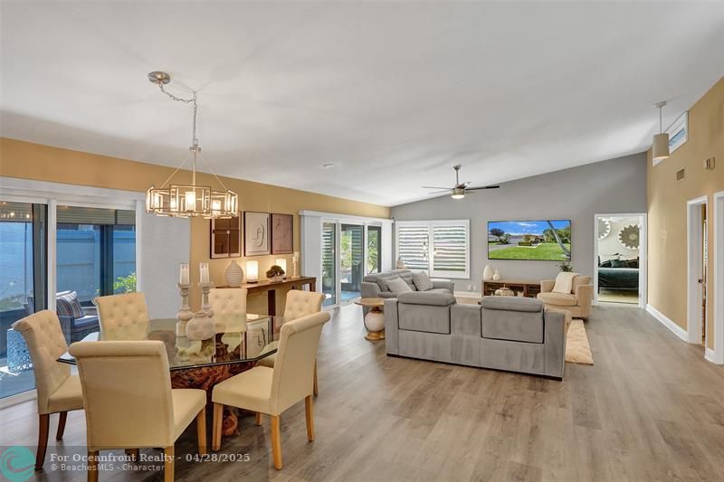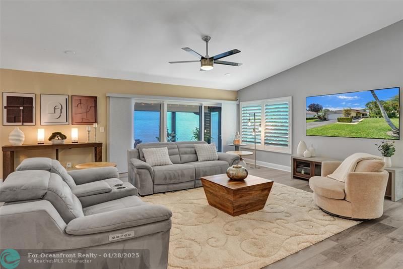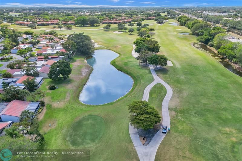 Open-concept 2 bedroom 2 bath floor plan has high ceilings with impact windows and beautiful plantation shutters. Also included, LVP flooring, updated baths, & kitchen. Screened patio has 2 other patios attached, 1 with pass-through kitchen window ideal for grill, larger 2nd one provides direct access to golf course and lakeside. Short walk to community pool, tennis and pickleball courts. Known as a guard-gated and patrolled golf community, membership is NOT required but very affordable & includes access to sister country club 8 miles north.