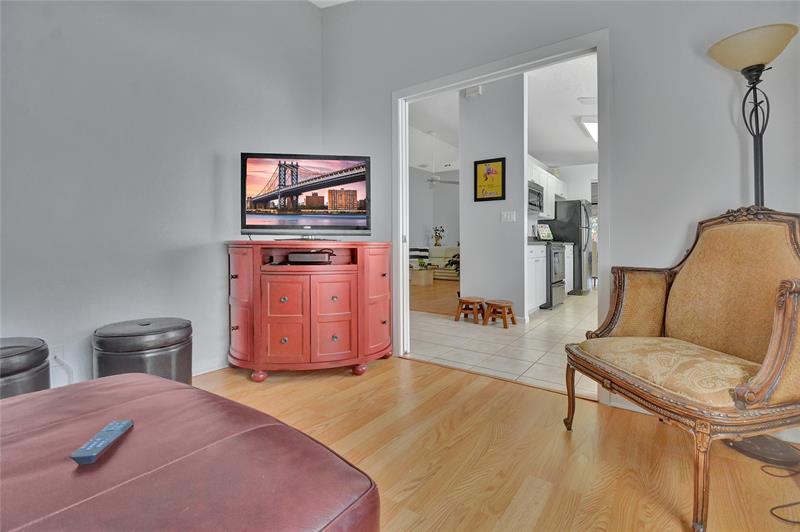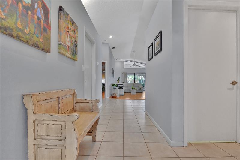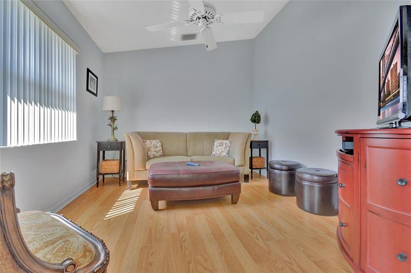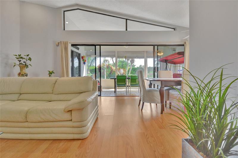 55+ Community - Discover this beautifully maintained 3-bedroom, 2-bath Lakeridge home, where comfort meets connection. Vaulted ceilings and a skylight fill the open layout with natural light, illuminating warm laminate floors throughout. The kitchen shines with sleek black lacquer countertops, double stainless sink, Frigidaire appliances, and abundant cabinetry. The spacious primary suite offers private patio access, dual vanities, and a generous walk-in closet. Relax on the screened, covered patio overlooking lush garden views. Additional features include a 1-car garage, 2022 A/C, 2018 roof, and low $295 HOA covering cable, lawn, and exterior care. Minutes to beaches, shopping, and dining — a serene retreat with timeless Florida charm.