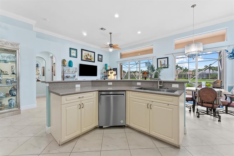 Beautifully renovated lakefront home in Mizner Falls featuring serene water views and a spacious split floor plan. The chef’s kitchen impresses with abundant prep space, pull-out cabinetry, a deep stainless sink, and 2023 appliances. The expanded primary suite offers three closets, including custom built-ins, plus elegant finishes throughout. Enjoy peaceful lake views from the extended screened-in lanai with a retractable awning. Additional upgrades include a full-home generator, 2023 AC, and a newer hot water heater. Move-in-ready Boynton Beach living at its best!