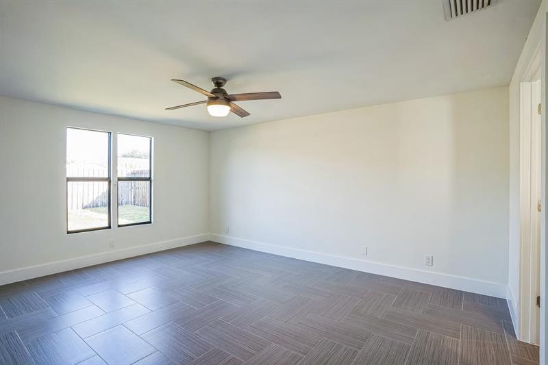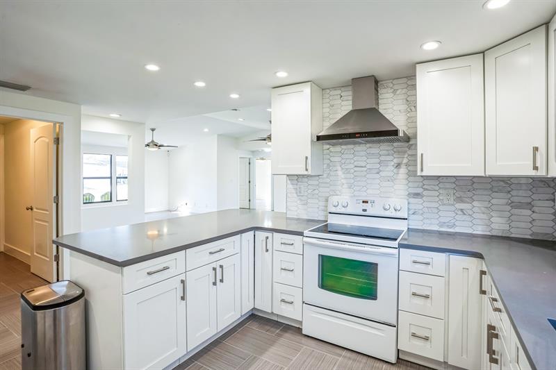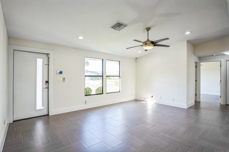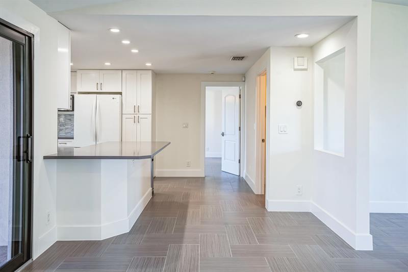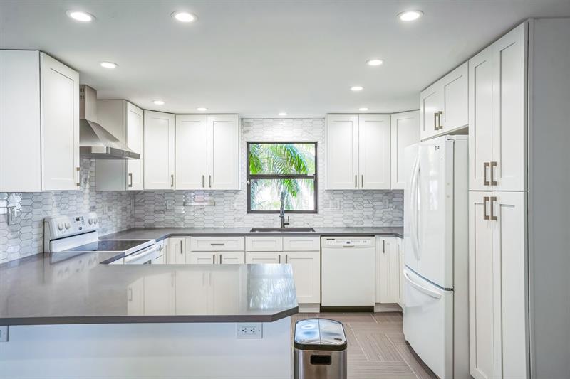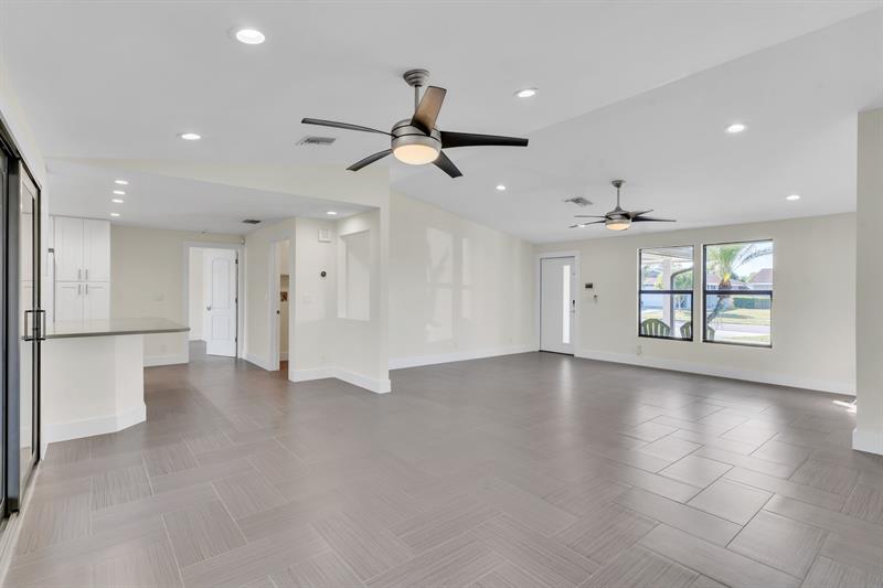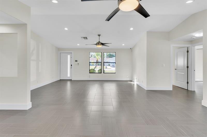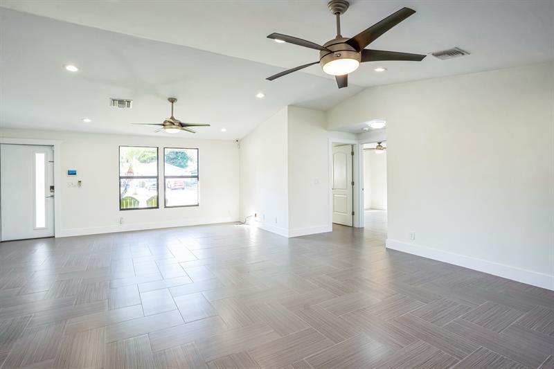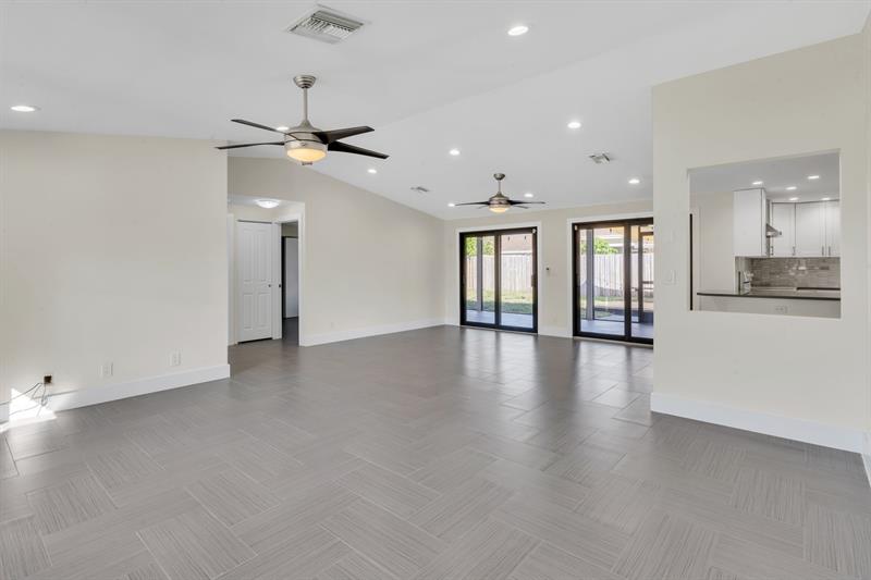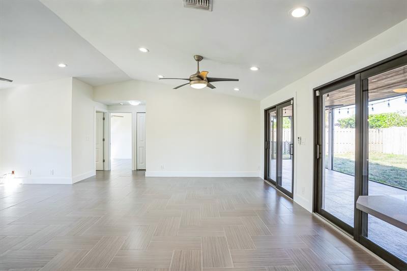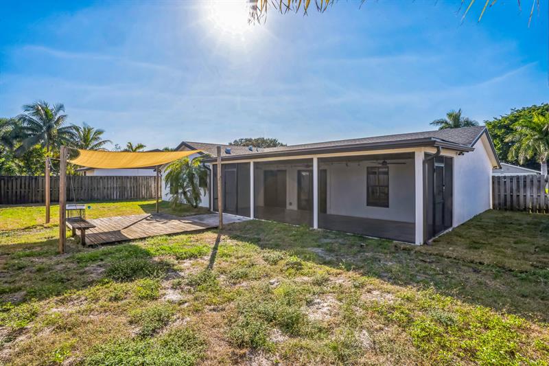 This beautifully renovated home features 3 spacious bedrooms and 2 elegant bathrooms. This home boasts an open floor plan with vaulted ceilings. Enjoy this beautiful South Florida winter on the cozy screened patio, perfect for entertaining or relaxing. Equipped with hurricane windows, a recently replaced water heater and roof installed in 2018. The large two car garage leads into a laundry room and from there into the main throughway. The master bathroom offers a seamless glass-enclosed step-in shower and a double sink. Ample closet space throughout, including a large master closet. Nestled in a quiet, family neighborhood and just 15 mins from the beach!