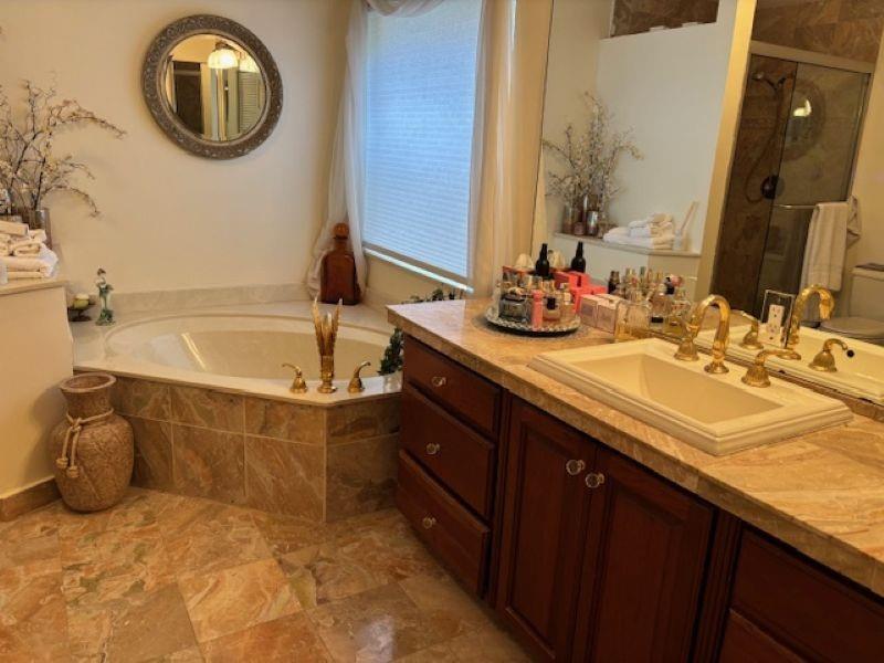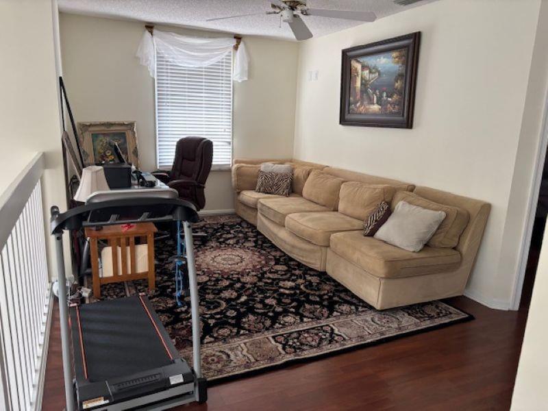 Welcome Home to this beautiful oasis located in The Estates at Windchime Lakes, a private gated community. Updates include roof, CAC, exterior painting, and enclosed patio. This home has an open floor plan with high ceilings, primary bedroom and laundry on first floor. The kitchen is equipped with custom wood cabinets, granite countertops, stainless steel appliances, tiled floor, and sliding glass doors that look out onto the lake. Living room and dining room have high ceilings, tiled floors, and large windows with alot if natural sunlight. Primary suite has ensuite bathroom with jacuzzi tub and stall shower as well as sliding glass doors to an enclosed private patio. The second floor boast 2 bedrooms, 1 full bathroom, and a loft style office area. Community amenities including a resort-st