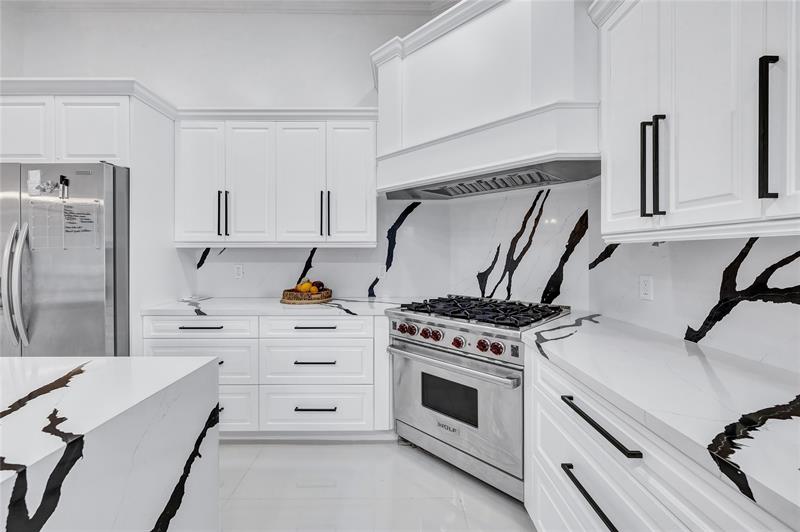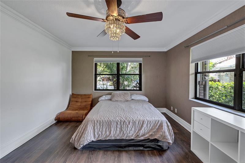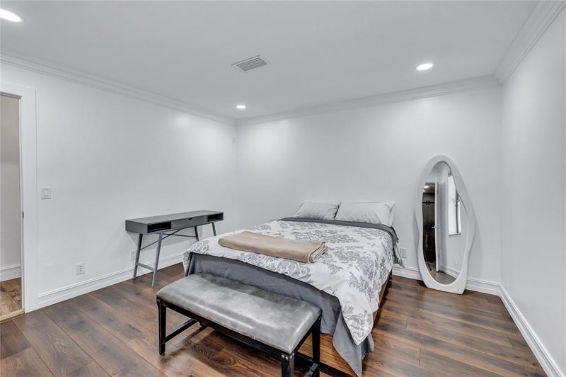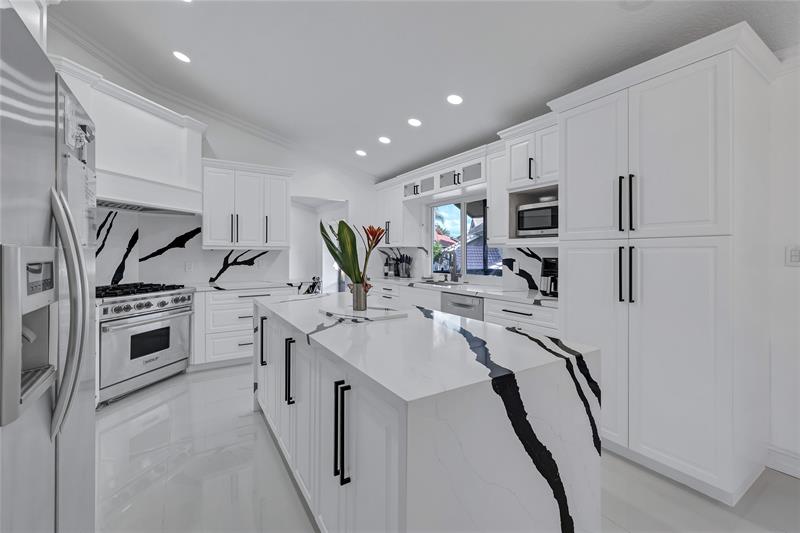 This stunning 5-bedroom, 3.5-bath waterfront home is on a large cul-de-sac lot, in the exclusive, gated Maplewood Isle with 24-hour manned security. The unique layout with 2 living rooms & 2 outdoor covered patio is great for entertaining. The property features a heated pool & spa, a serene Koi pond, lush landscaping with fruit trees. Remodeled interior, includes a chef’s kitchen with quartz countertops, a Wolf 6-burner stove, workstation sink & upgraded cabinets. Huge master suite boasts a private patio with spiral staircase to the pool, In-Law suite with a private entrance adds flexibility. Additional highlights include a private office, wine fridge, modern lighting upgrades throughout. With a Tesla charger, home generator, newer A/C units, pool pump, heater, irrigation pump, and roof.