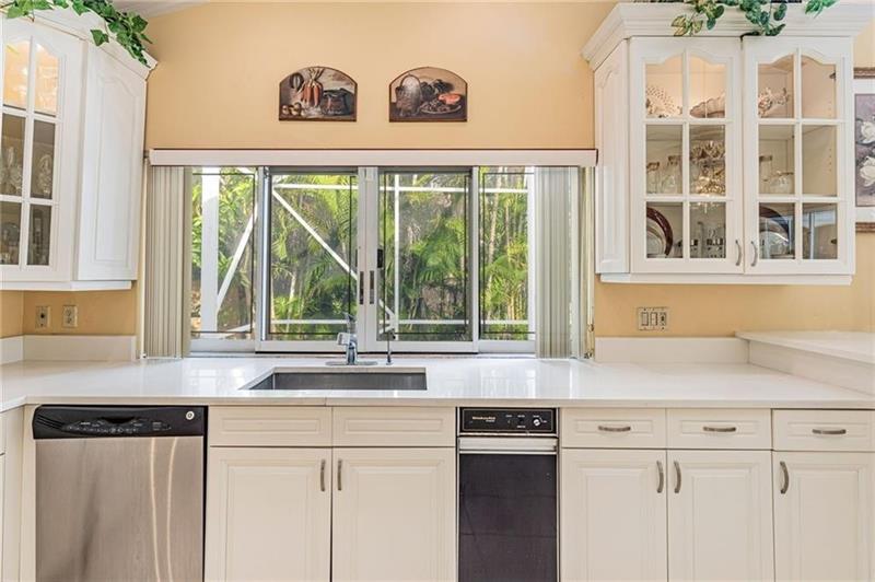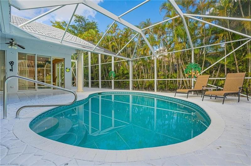 Beautiful 4 bed, 3.5 bath pool home in prestigious guard-gated Eagle Trace. This spacious residence features wood floors throughout, a bright open layout, large family room with stone fireplace, and a stunning updated kitchen with island, wall ovens, SS appliances, pantry, and views of the pool. Triple-split floor plan offers great privacy, with a generous primary suite featuring two walk-in closets and a spa-style bath. Enjoy a huge screened-in pool and patio plus an oversized yard and circular driveway. Community amenities include a new clubhouse, gym, playground, pickleball & tennis courts, and 24-hour security. Optional golf membership.