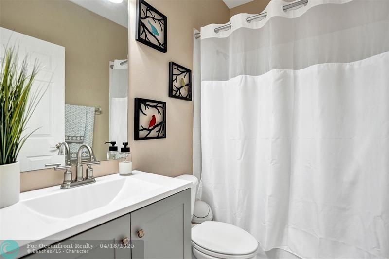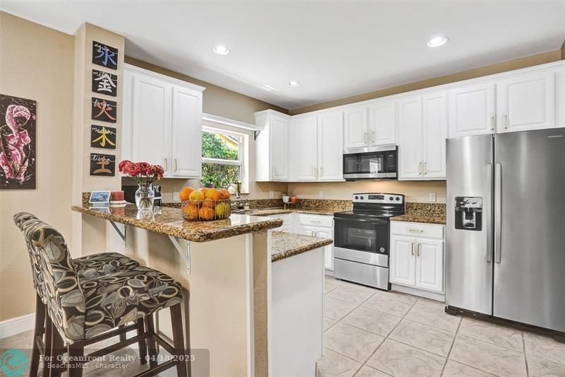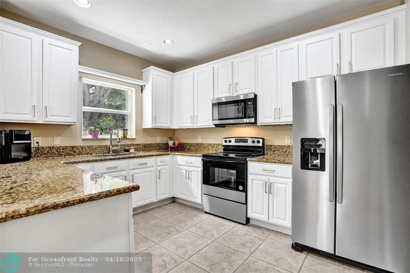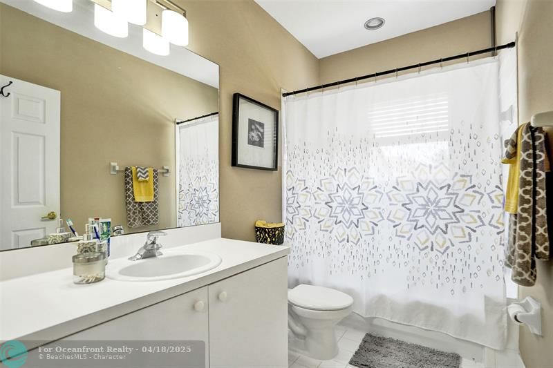 Beautiful 3 bedroom, 3 full bath, 2 car garage home in the desirable gated community of Vizcaya in Coral Springs with low HOA that includes lawn service, cable, alarm monitoring and amenities: Clubhouse with gym, pool, hot tub and tennis! This home features an amazing floor plan with 1 bedroom and full bathroom downstairs with new vanity and 2 master suites upstairs, FRESHLY PAINTED EXTERIOR, brand new IMPACT WINDOWS & DOORS, Updated kitchen with white wood cabinets, granite countertops and BRAND NEW STAINLESS STEEL APPLIANCES, tile floors in living area and brand new wood-look tile in downstairs bedroom, tall ceilings, covered patio and fully fenced in backyard. Newer AC unit (5 years new), NEW WATER HEATER. Excellent location, Great Schools, near highway. Can be rented right away.