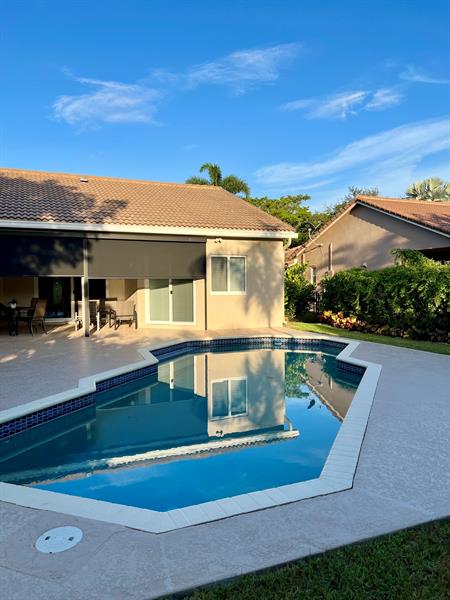Exquisite modern split 5 bedroom 2.5 bath pool home! Professionally landscaped with tropical flair! Interior is just as stunning with over $250K in upgrades! High ceilings, plantation shutters and natural light in every room. Tiled floors in main areas, Luxury vinyl plank in bedrooms.