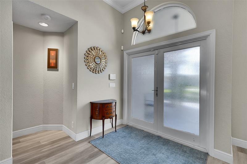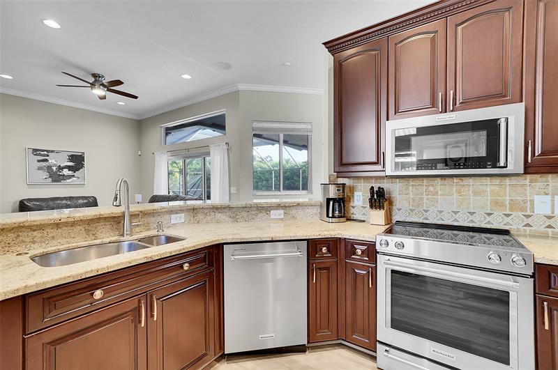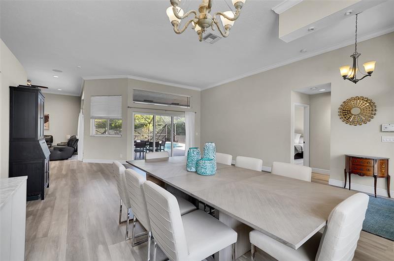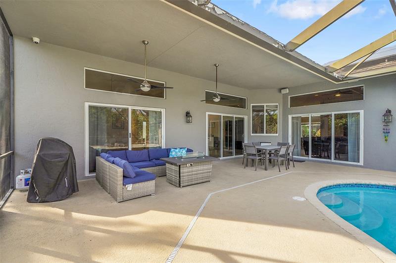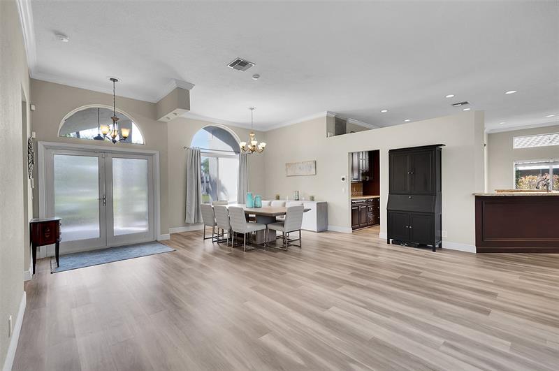 Welcome to this beautifully updated 4-bedroom, 2.5-bath Pool home in the prestigious Kensington Gardens community. Featuring an Oversized 11,500ft. lot, modern kitchen, a renovated primary suite with spa-like bathroom, and new luxury vinyl flooring throughout, this home blends comfort with style. The split bedroom floor plan offers privacy, while impact windows provide peace of mind. Enjoy the convenience of a circular driveway and 2-car garage, plus the benefit of a top-rated school district. Major updates include a Screened in Saltwater pool, Sprinkler on a well. 2020 AC, a 2015 AC, and a 2009 roof, Solar panels for a lower electric bill—ensuring long-term value. This is the perfect combination of location, lifestyle, and lasting quality. HOA fees only $219 per Quarterly.
