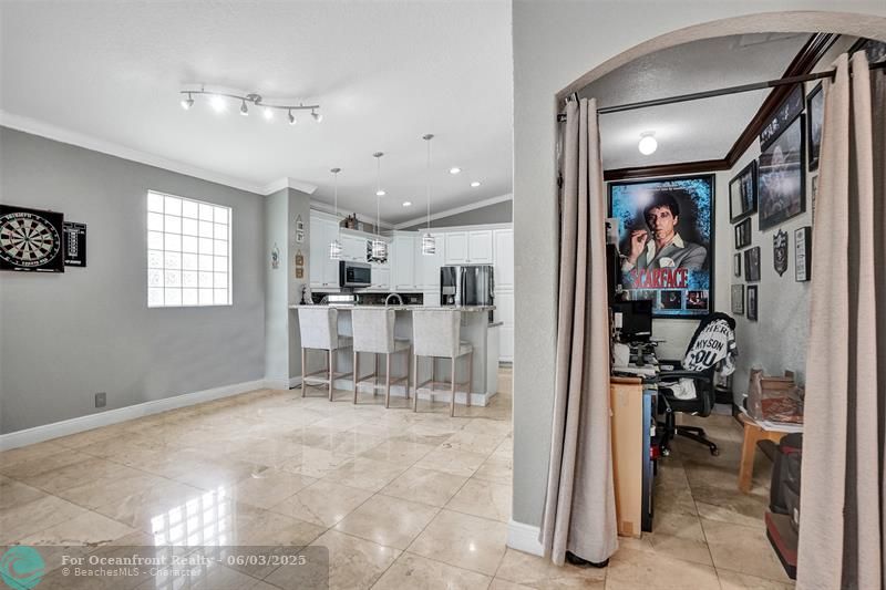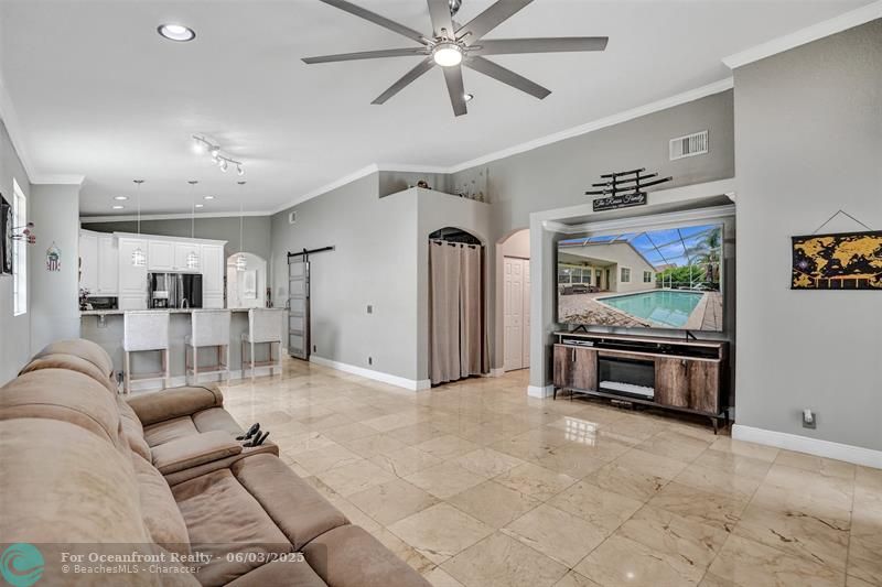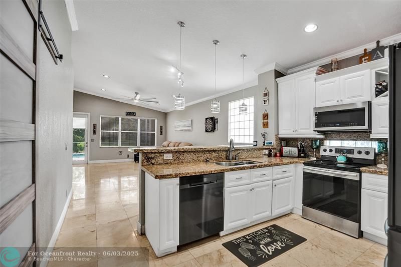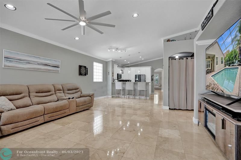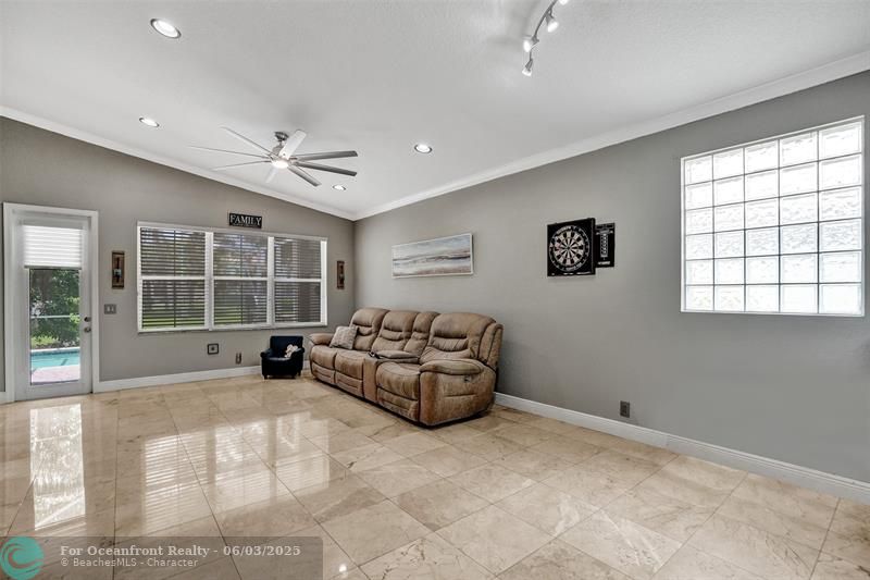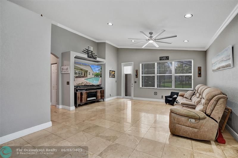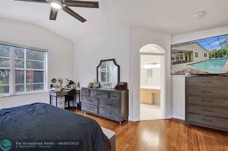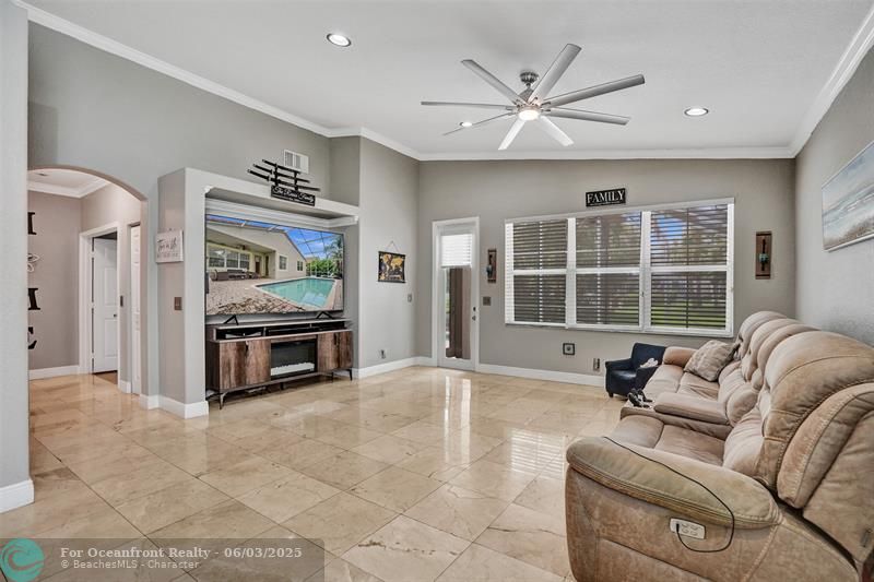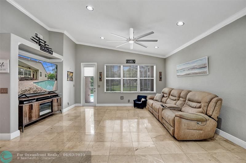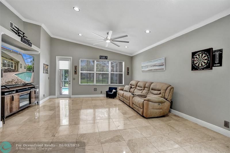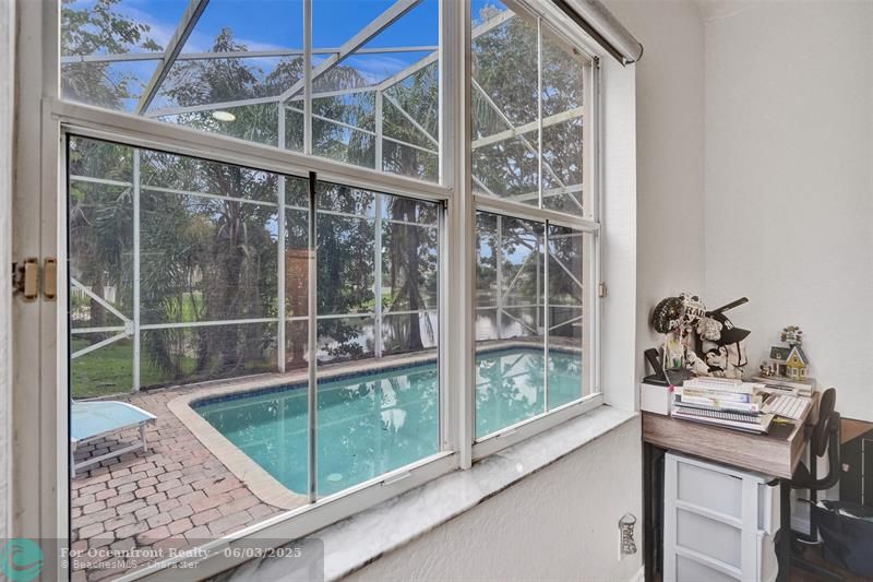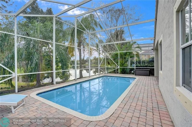 Coral Shores Perfection, Poolside Views & Polished Living. This 4-bedroom 2-bath residence offers a spacious, single-story layout featuring marble floors, rich wood bedroom finishes, and a private bonus office ideal for remote work. The chef-inspired kitchen boasts granite countertops, wood cabinetry, stainless steel appliances, and a generous walk-in pantry. Vaulted ceilings, custom closets, and a dedicated laundry room add to the home’s elevated feel. Enjoy serene lake views from the screened-in patio with a private pool, perfect for entertaining. A gated and safe community adds peace of mind. Nestled near top-rated schools and just minutes from the Sawgrass Expressway and major highways, this home is the total package of style, comfort, and convenience.