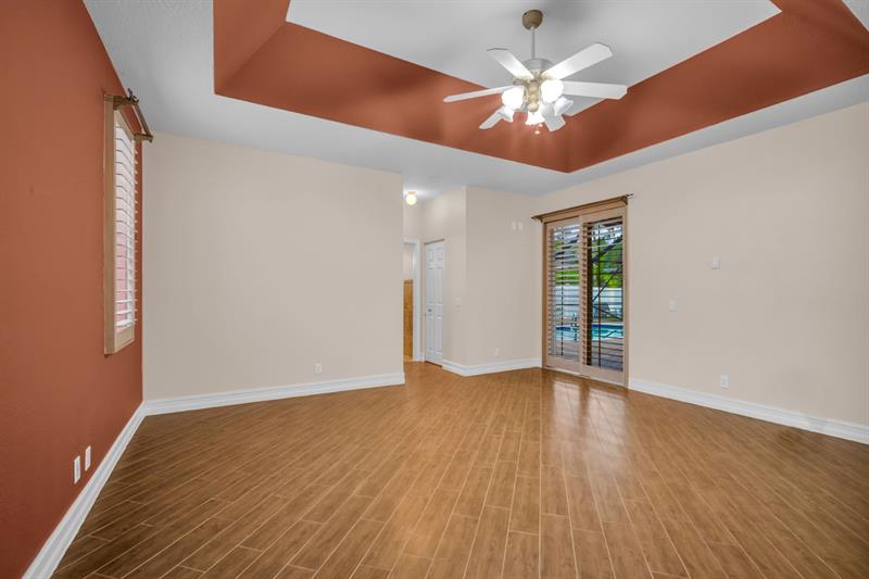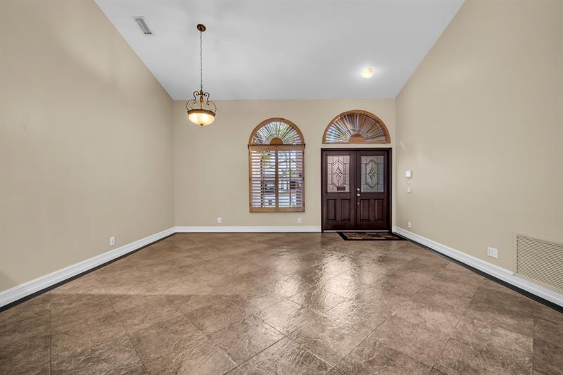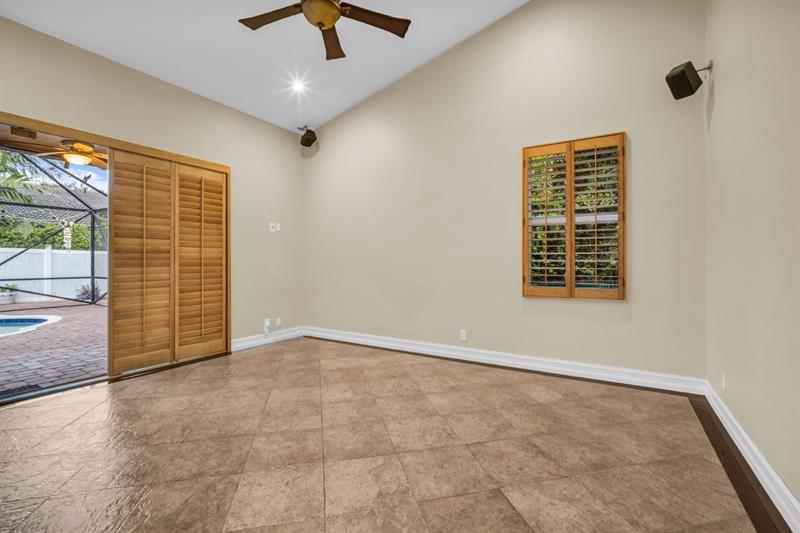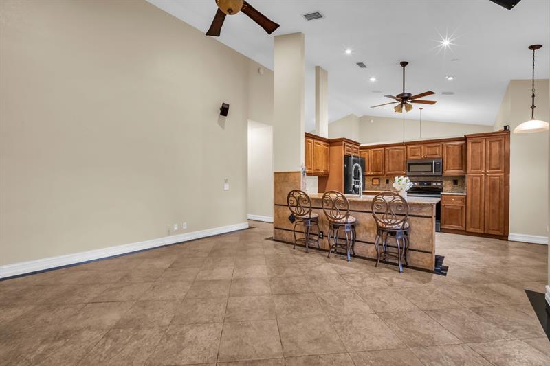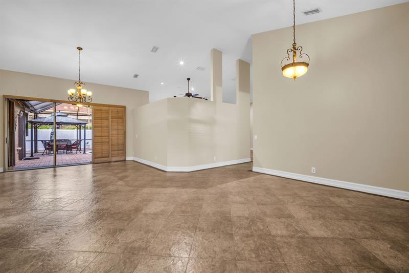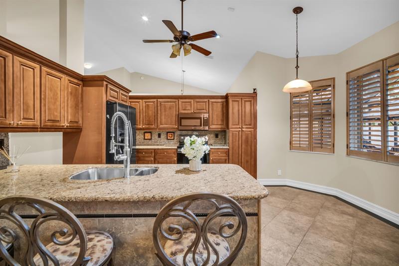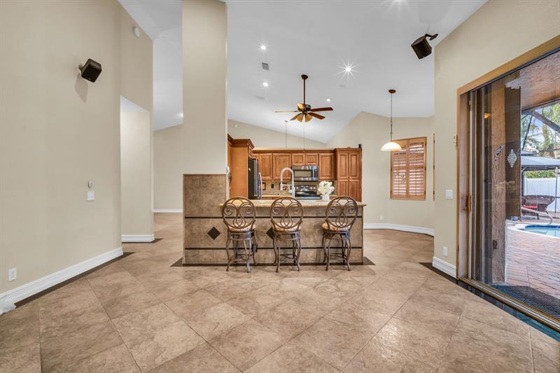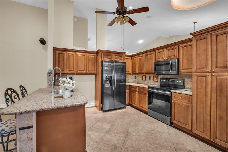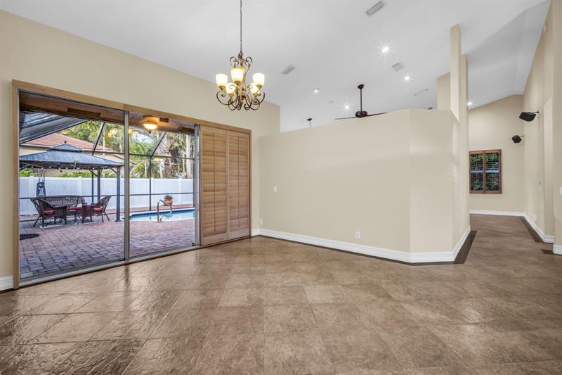 Welcome to your future home! This stunning property sits right next to a natural preserve full of nature and privacy on a quiet cul-de-sac, this home features vaulted ceilings and a bright, open-concept kitchen with granite countertops and 2022 stainless steel appliances. Enjoy seamless indoor-outdoor living with a private, screen-enclosed salt water pool, perfect for relaxing or entertaining. The primary bathroom includes a convenient cabana door, offering direct pool access. Additional highlights include an impact-rated garage door and accordion shutters along the back for added storm protection. A beautifully designed home combining comfort, function, and peace of mind. 2024 spanish tile roof, 2019 A/C with 10 year warranty, 2024 gutters, 2024 w/d, electric connection to generator.