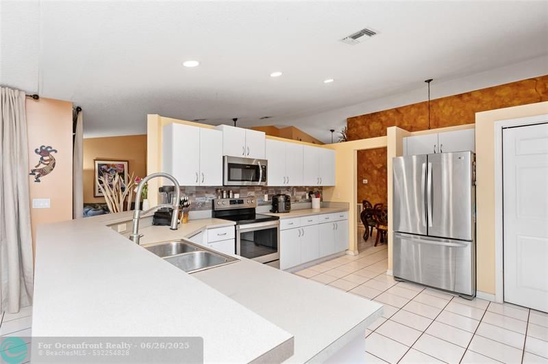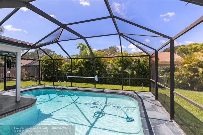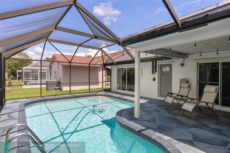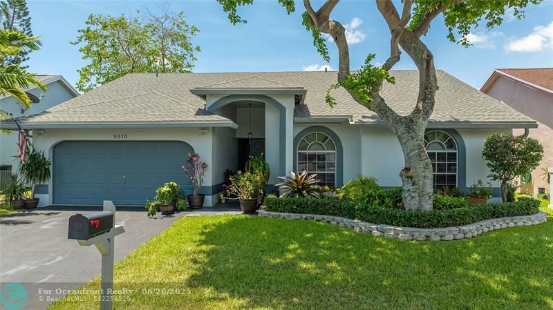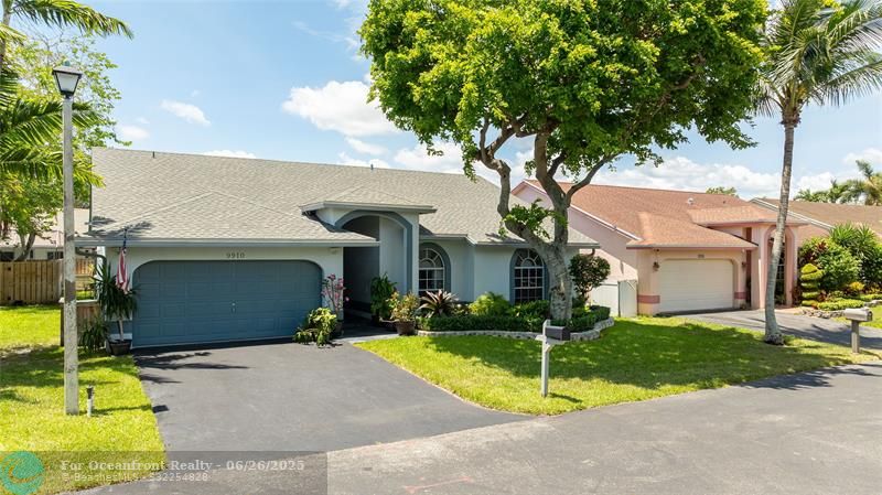 Perfectly located home in Coral Springs, Florida! 4 bed/2 bath/2 car garage situated on a quiet cul-de-sac in a great neighborhood with lush landscaping and gorgeous curb appeal. Open floor plan with vaulted ceilings and 3 glass sliders lead out to completely screened in pool area w/automatic pool cleaner included and direct access cabana bath off primary bedroom. Spacious dining room with space for 12, updated guest bath w/farmhouse sink and stylish shiplap feature, extra bedrooms to use as home office or gym! No carpet!
